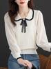 Camiseta de Manga Larga con Cuello Peter Pan para Mujer 2025 Nueva Moda Tejido de Seda Helada Reductor de Edad Camisa de Estilo Occidental a la Moda Camisa Interior con Encaje