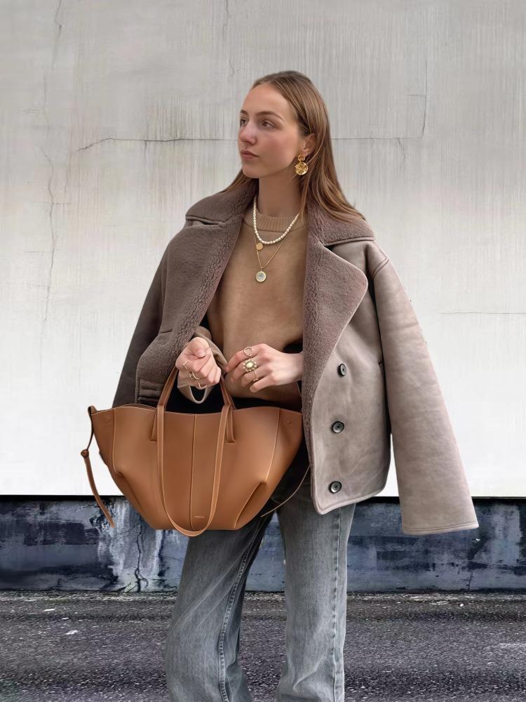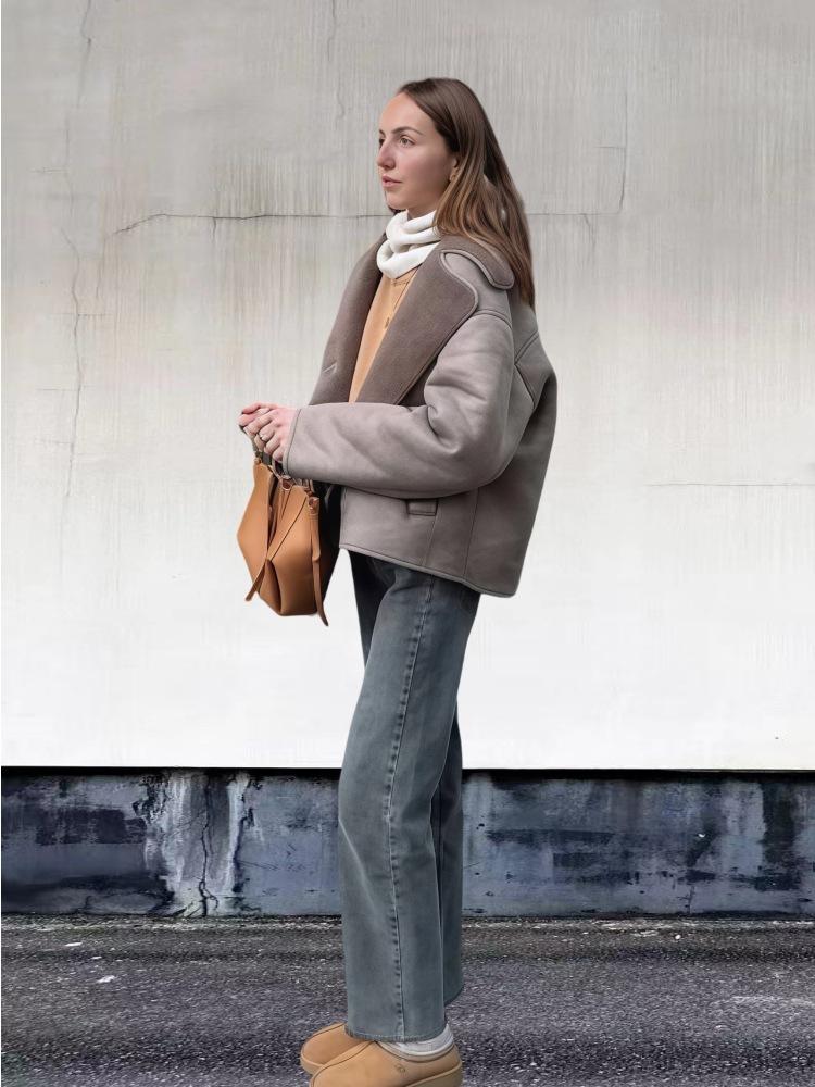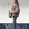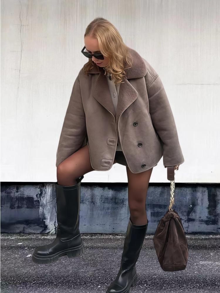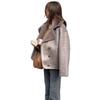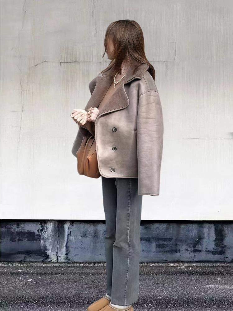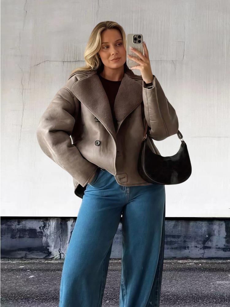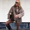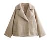 Europa y Estados Unidos transfronterizo nuevo temperamento de moda retro solapa lana de cordero manga larga chaqueta abrigo corto de costura con tres botones para mujer