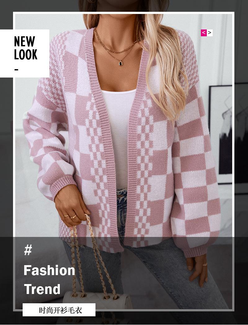 Nuevo Otoño e Invierno Transfronterizo Moda de Exportación Europea y Americana Tejido de Punto Casual Suelto Cuello en V Cárdigan Tejido de Punto para Mujer