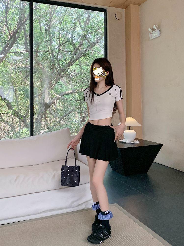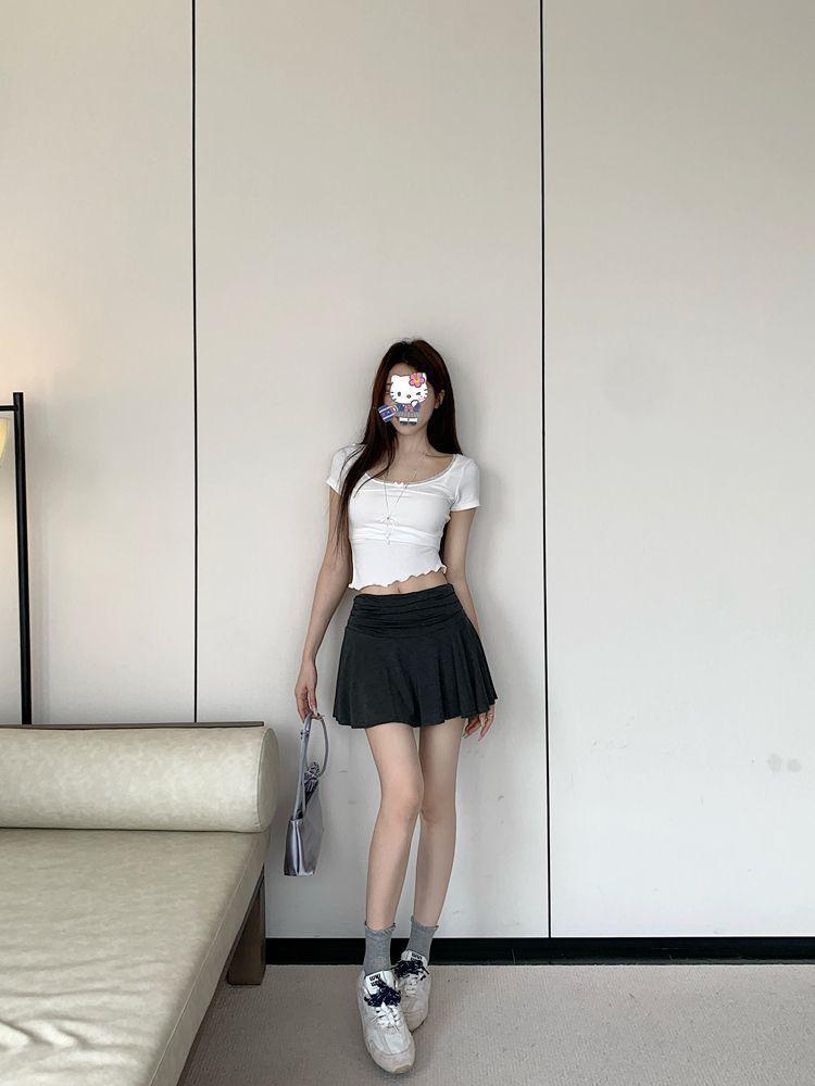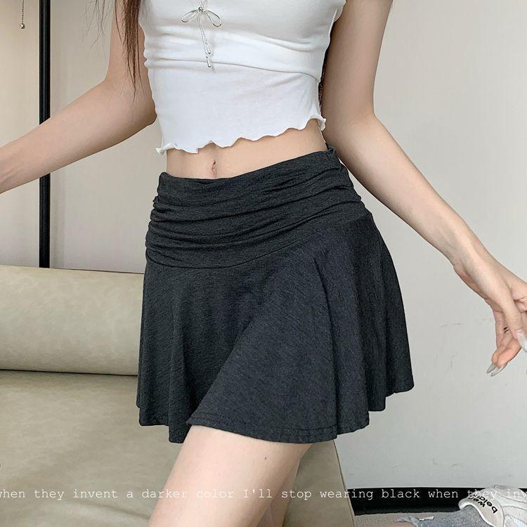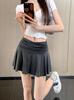 Falda Americana Gris Estilo Deportivo Plisada A-Line para Mujer Verano Nueva Cintura Alta Look Adelgazante Anti-Exposición Falda Corta Versátil