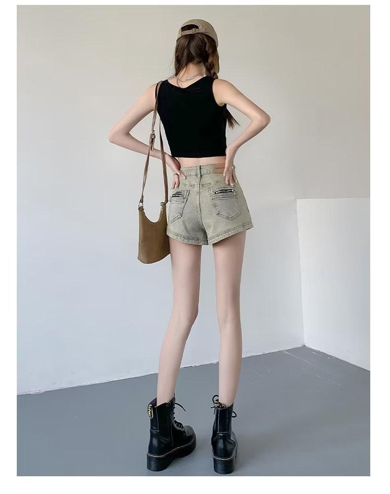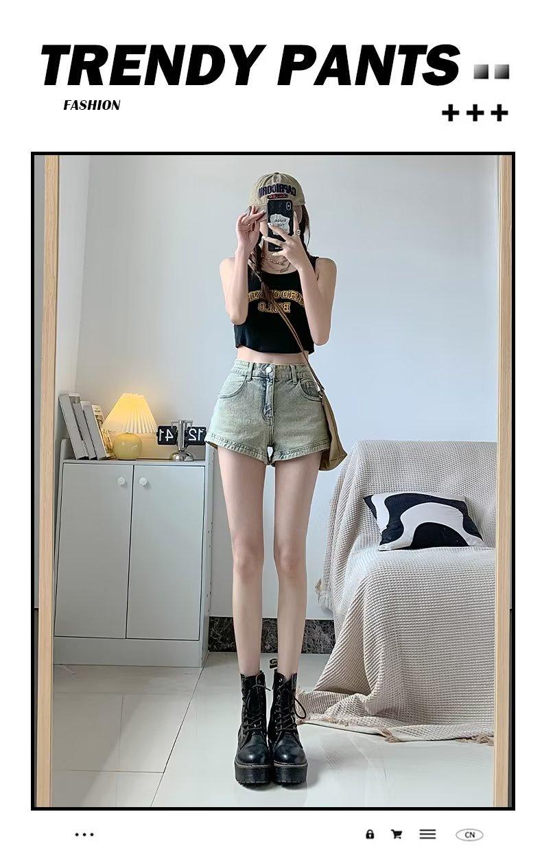 Shorts de Mezclilla Retro Americanos para Chica Picante Verano 2025 Nuevos de Cintura Alta Corte A para Mujer Shorts de Pierna Ancha para Mujer al Mayoreo
