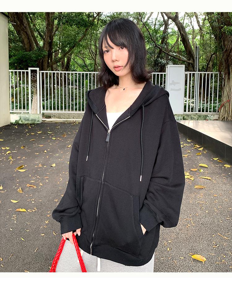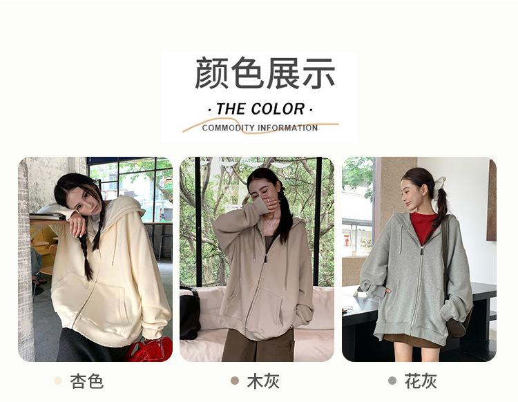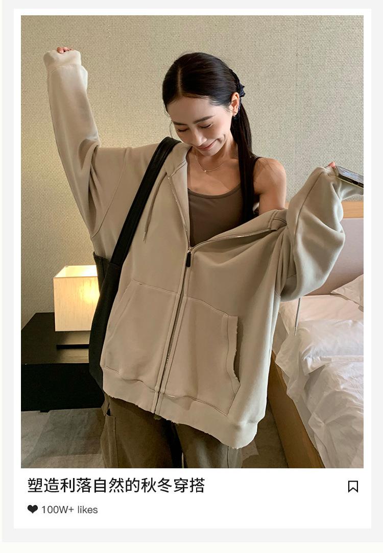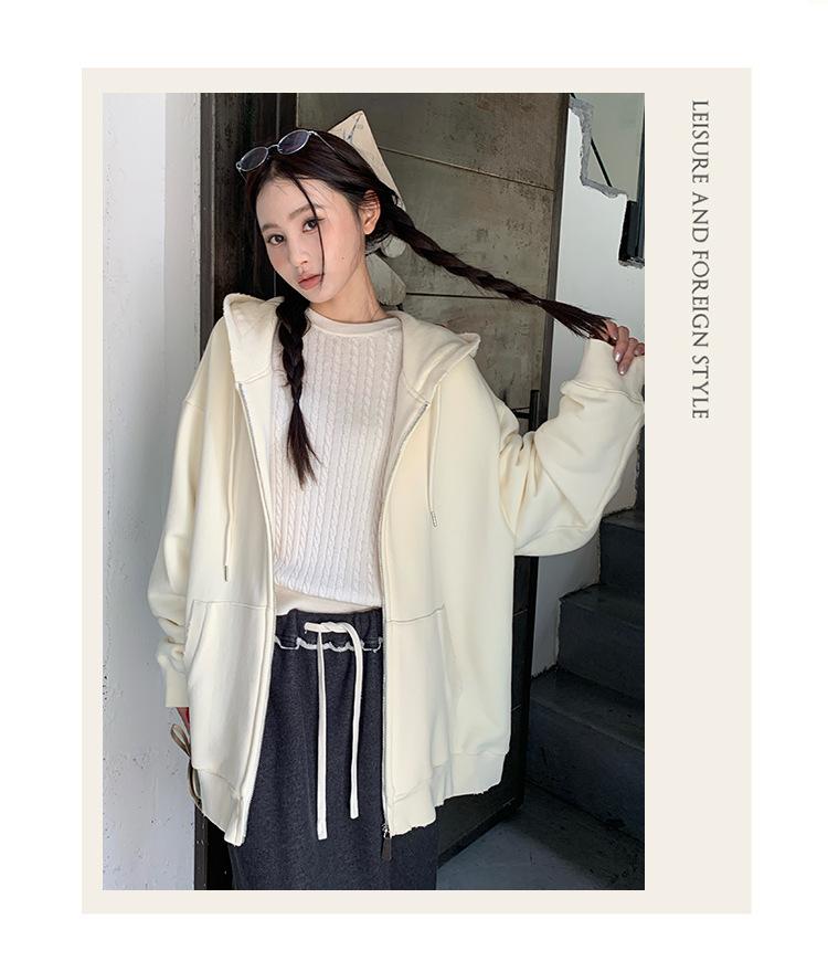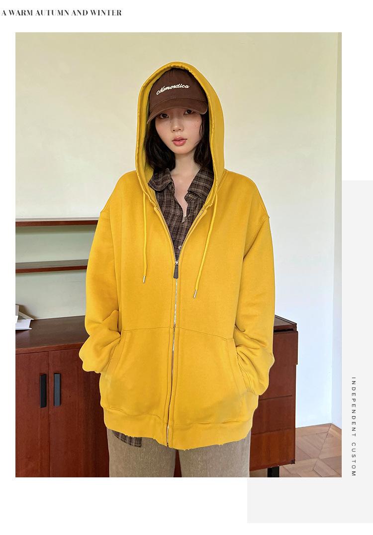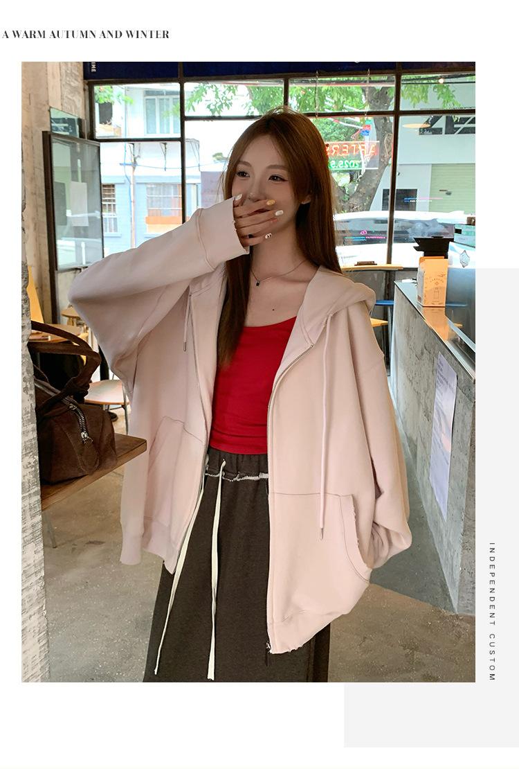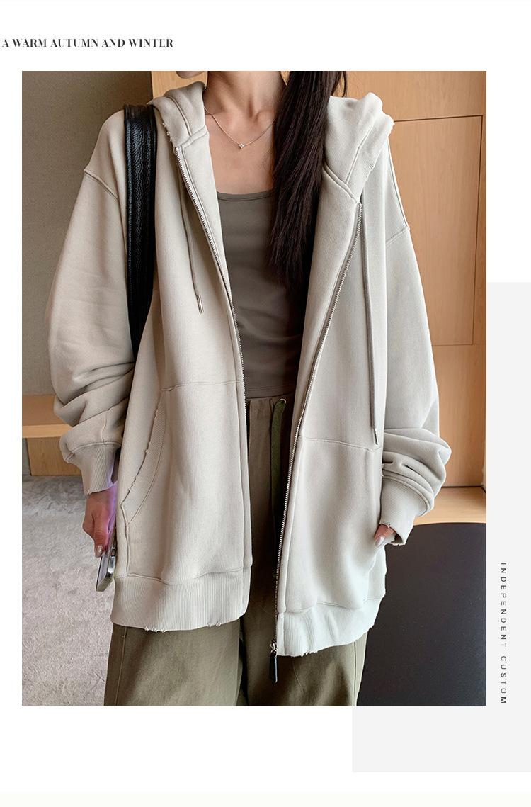 Sudadera chaqueta de algodón terry de peso pesado otoño e invierno nuevo estilo para mujer estilo coreano cremallera estilo holgazán suelta con capucha cárdigan top