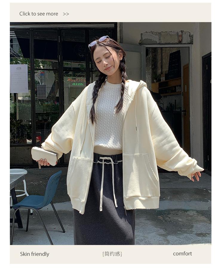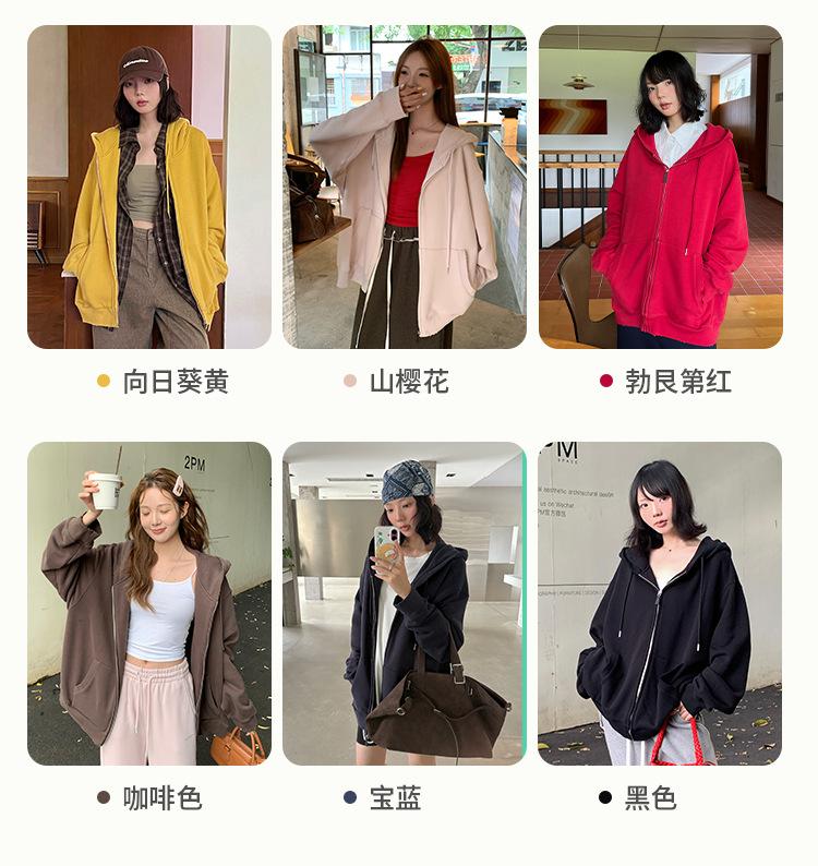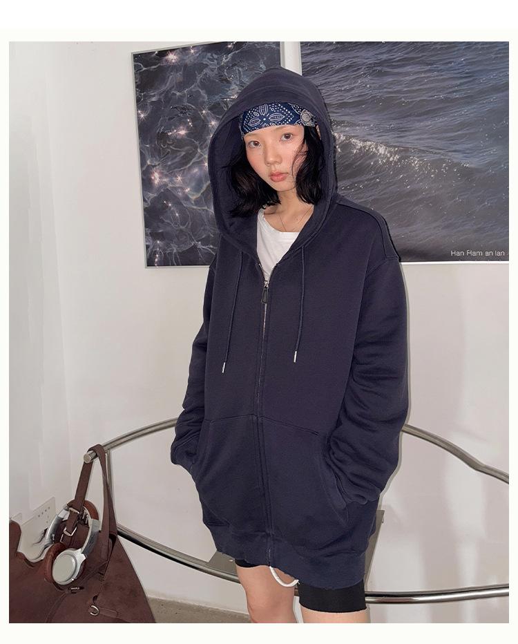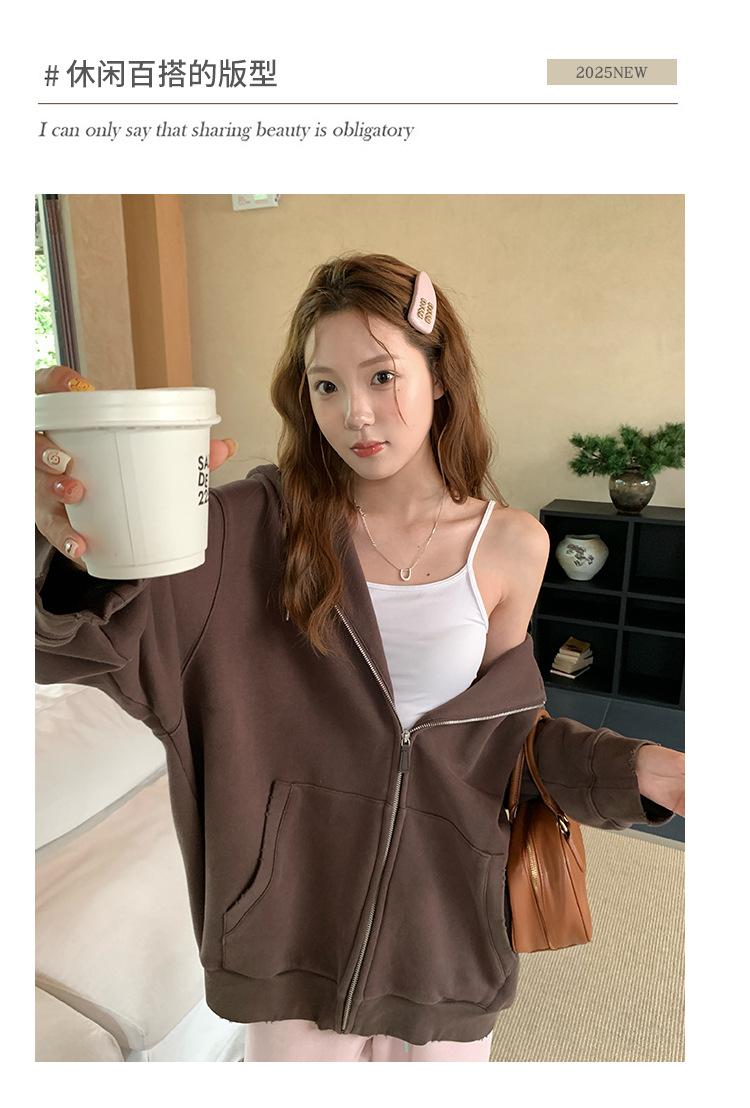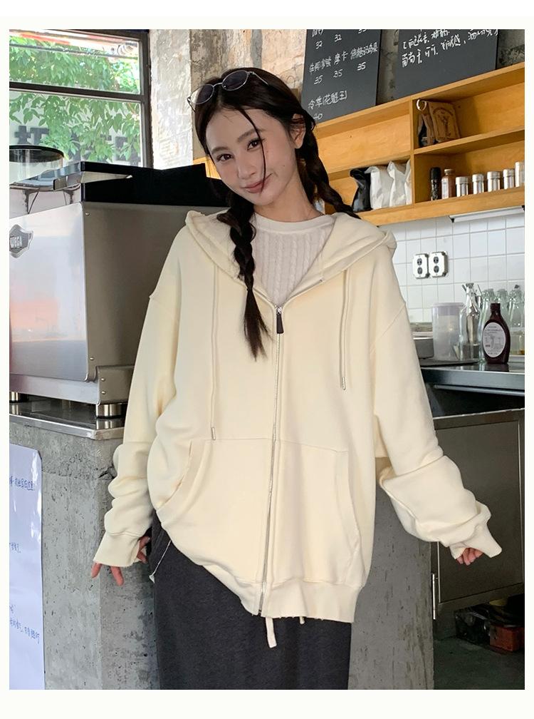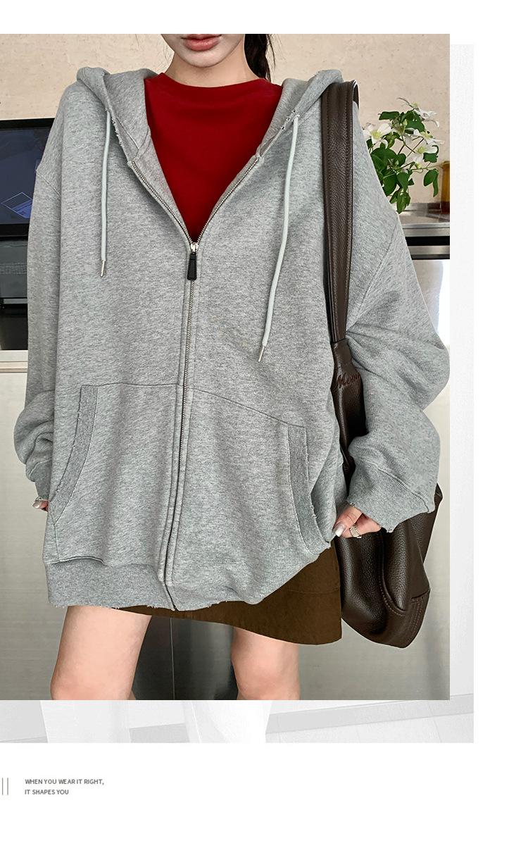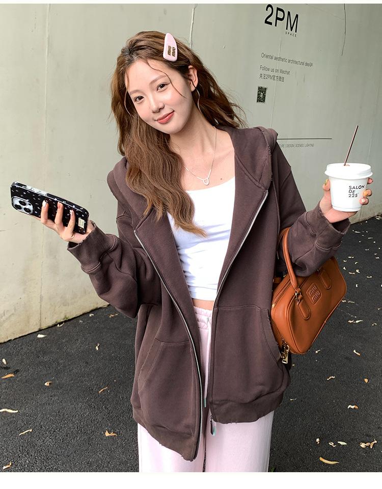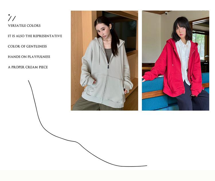 Sudadera chaqueta de algodón terry de peso pesado otoño e invierno nuevo estilo para mujer estilo coreano cremallera estilo holgazán suelta con capucha cárdigan top
