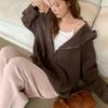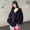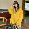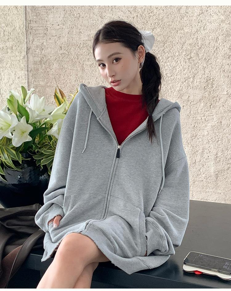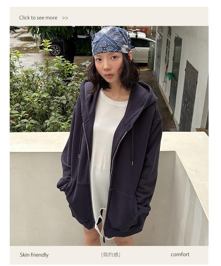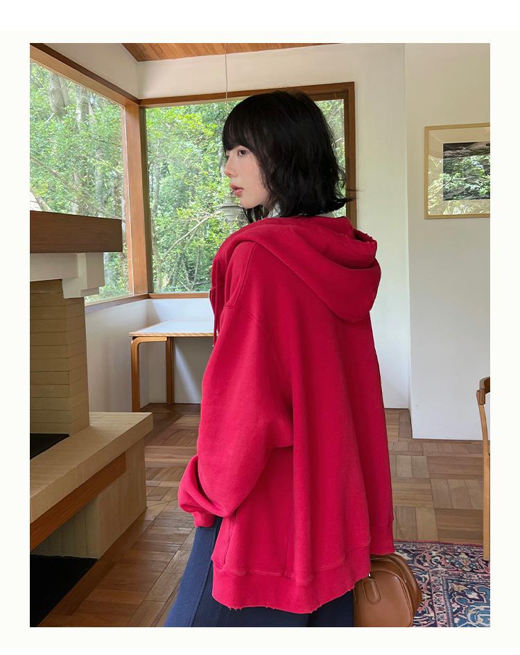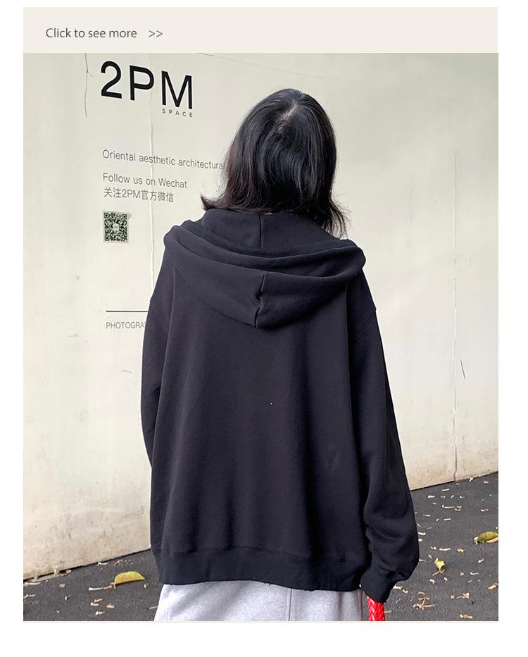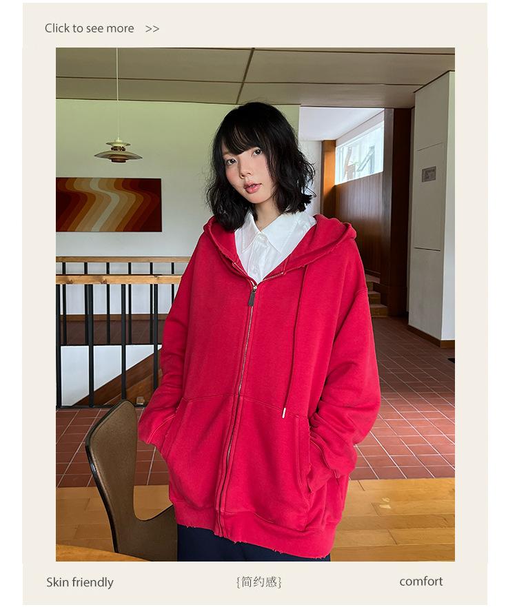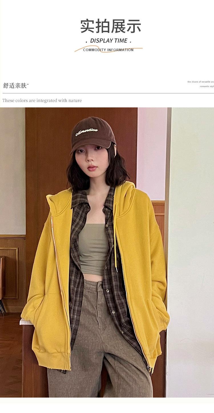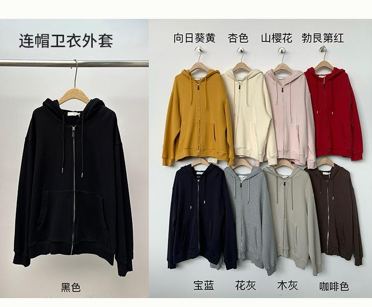 Sudadera chaqueta de algodón terry de peso pesado otoño e invierno nuevo estilo para mujer estilo coreano cremallera estilo holgazán suelta con capucha cárdigan top