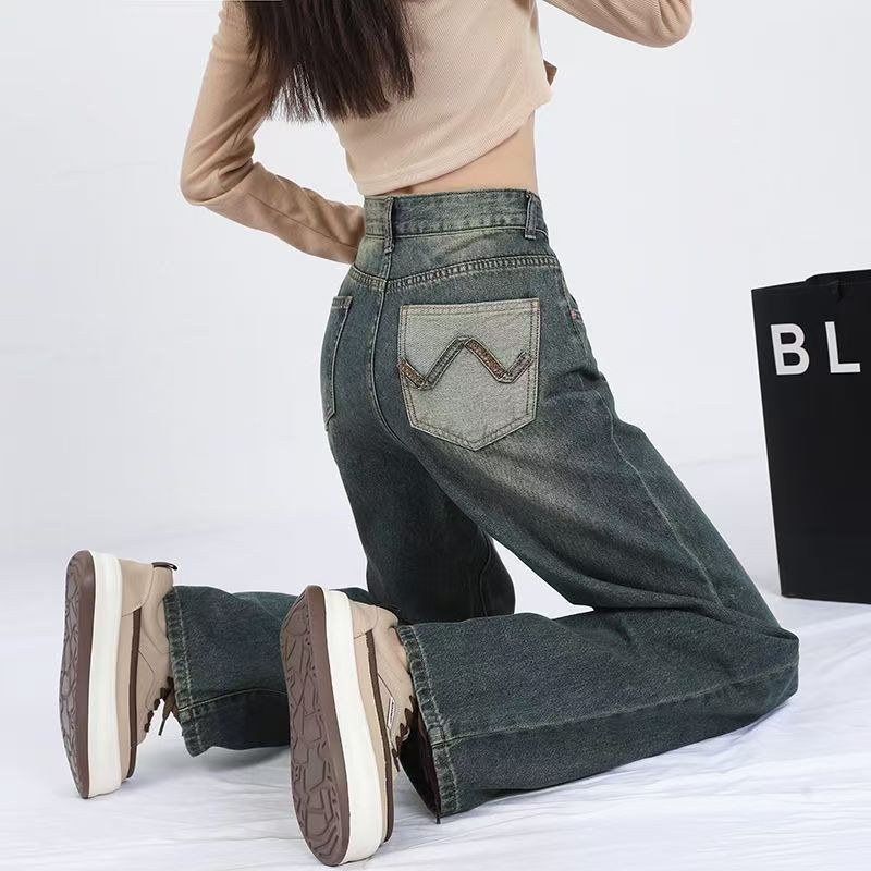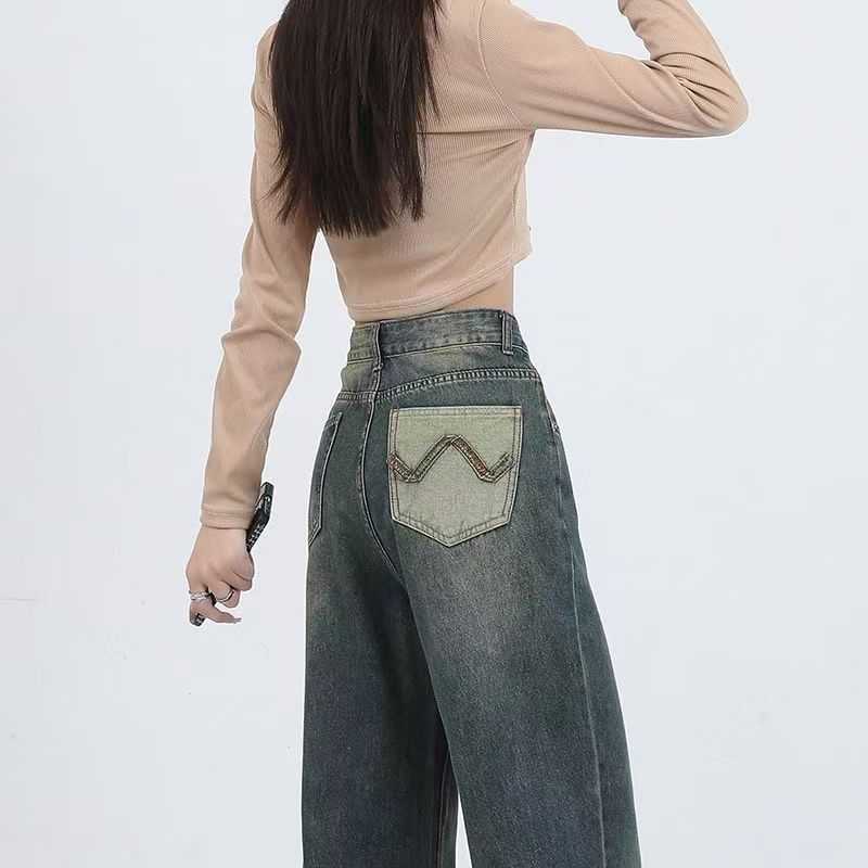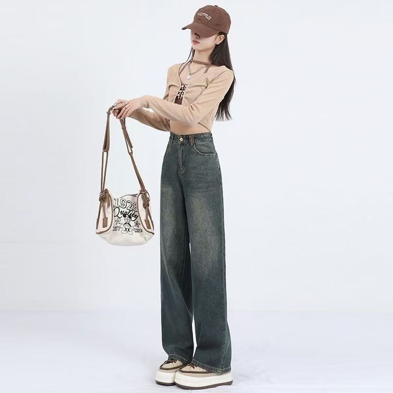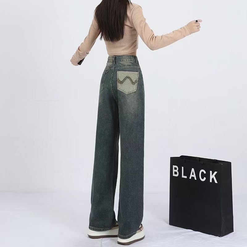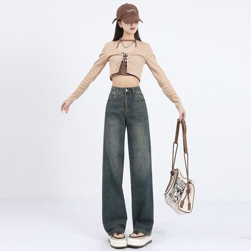 Jeans Retro de Pierna Ancha 2025 para Mujer Primavera Nuevo Americano Cintura Alta Slim Recto Pantalones Largos hasta el Piso
