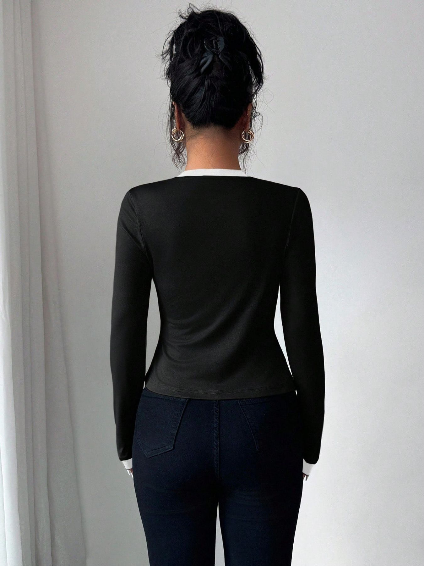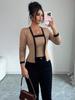 Cardigan elegante de malha patchwork transfronteiriço europeu e americano outono 2025 novo para mulheres e top de duas peças colete