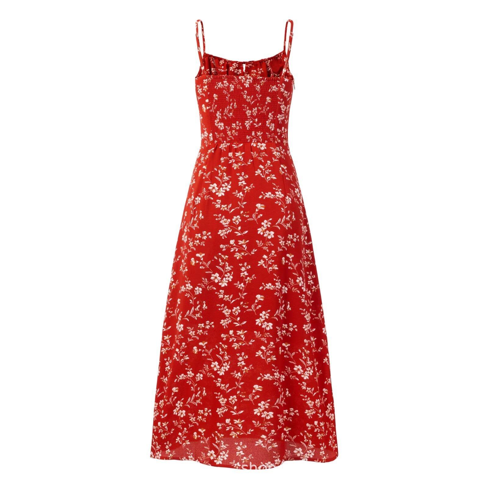 Vestido francés retro 2025 de primavera temprana nuevo ajustado floral con tirantes para mujer