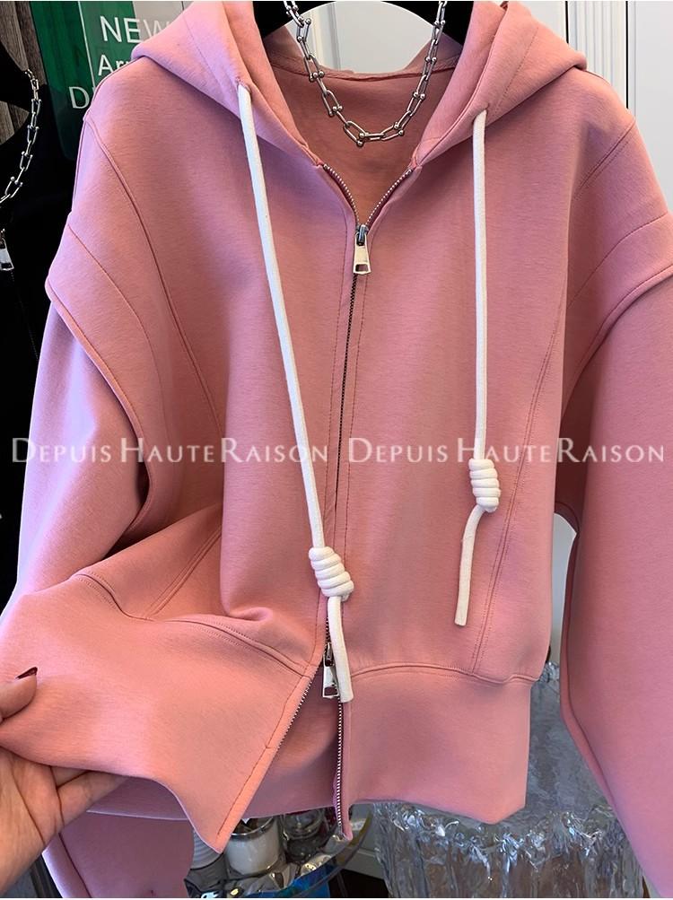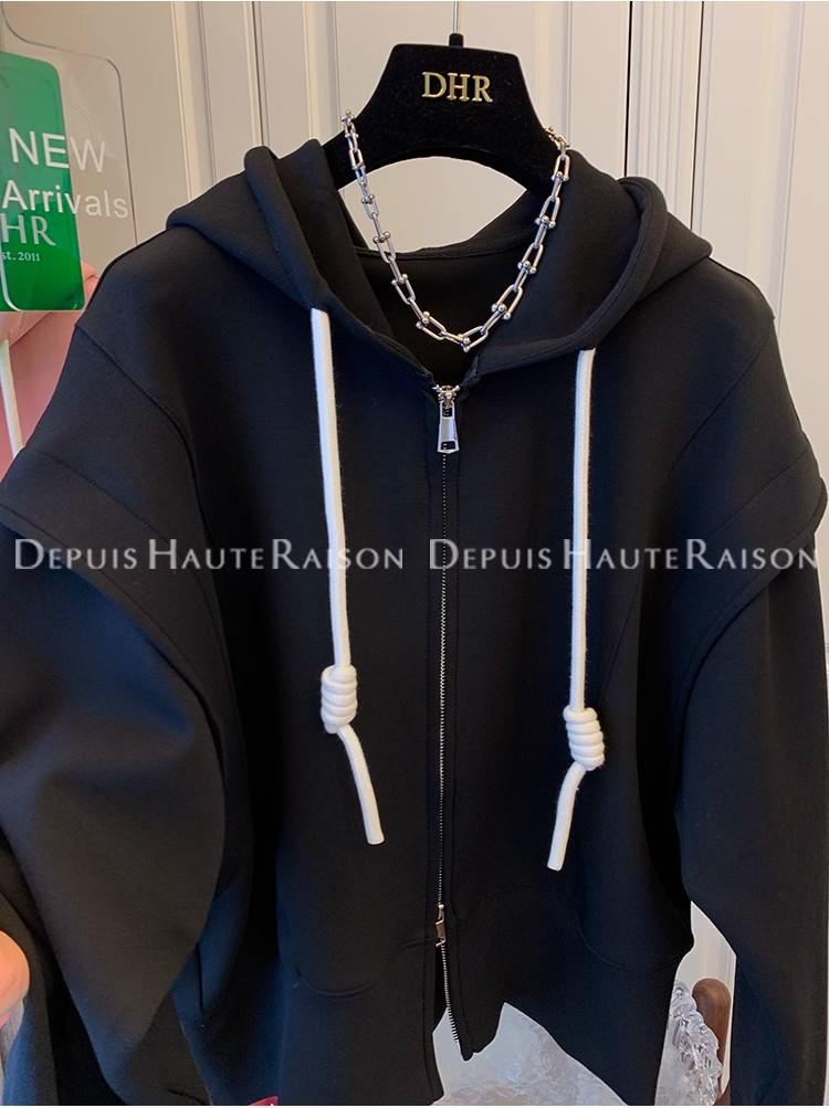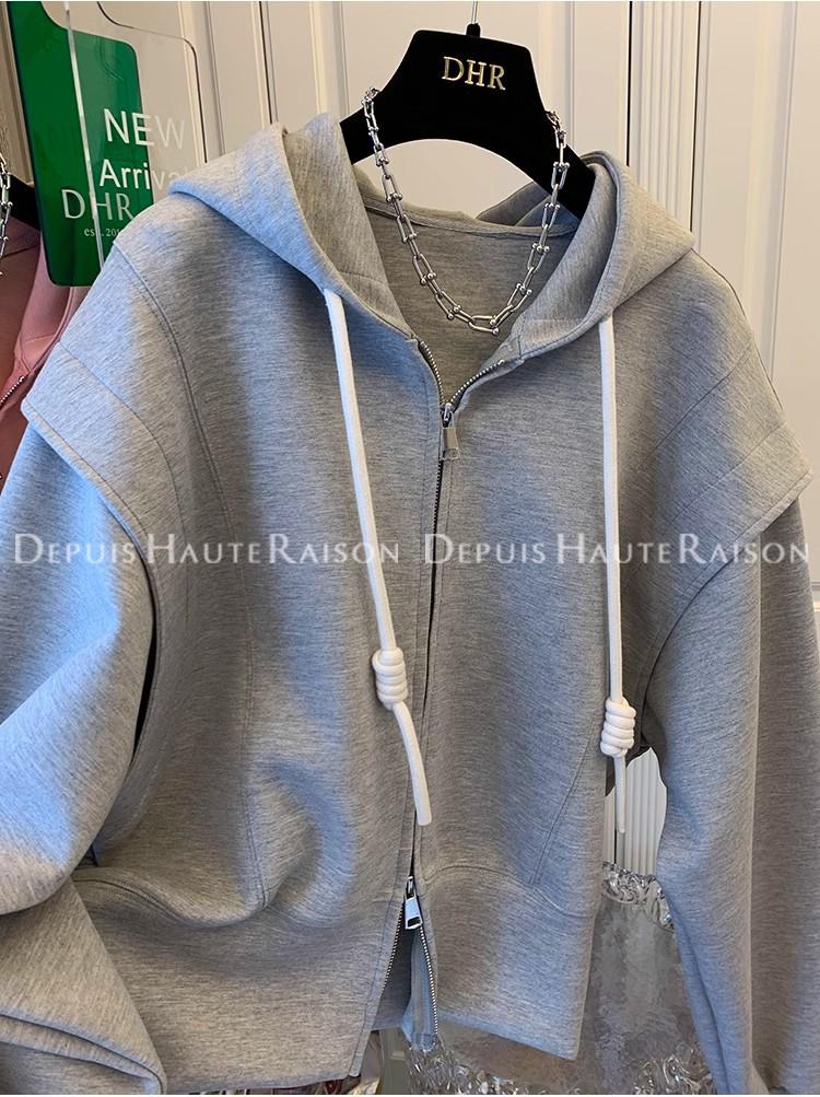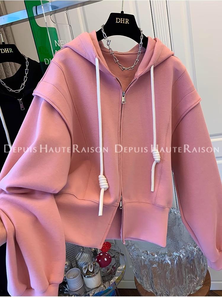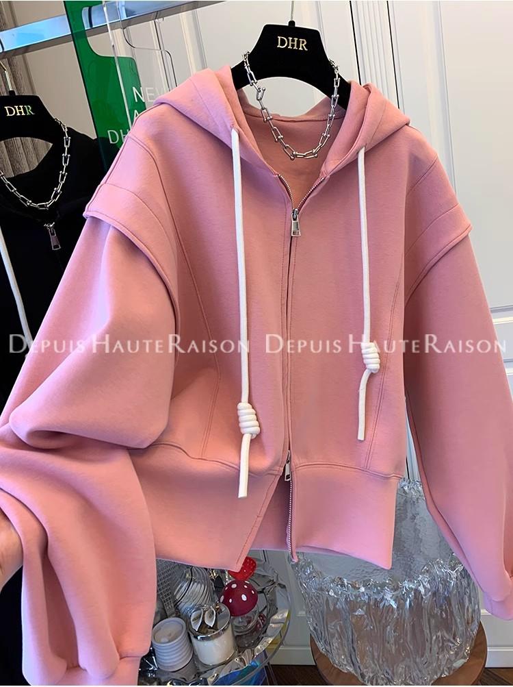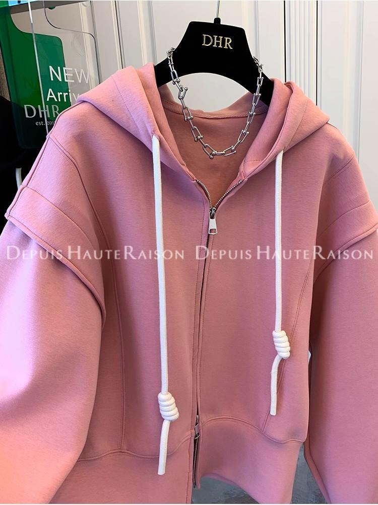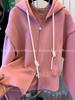 Talla Grande 300 Jin Cárdigan con Cremallera Doble Sudadera con Capucha para Mujer Primavera y Otoño Suelta Petite Estilo Perezoso Chaqueta Tendencia