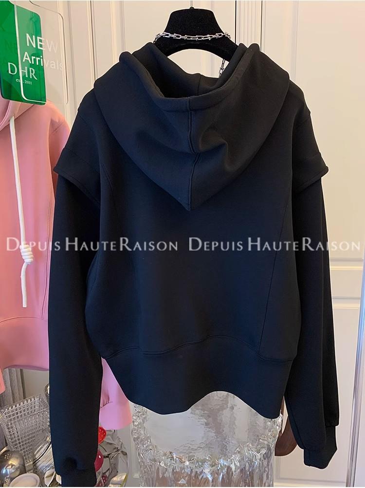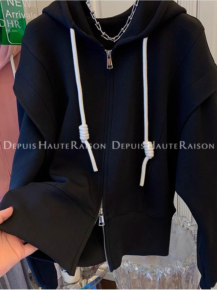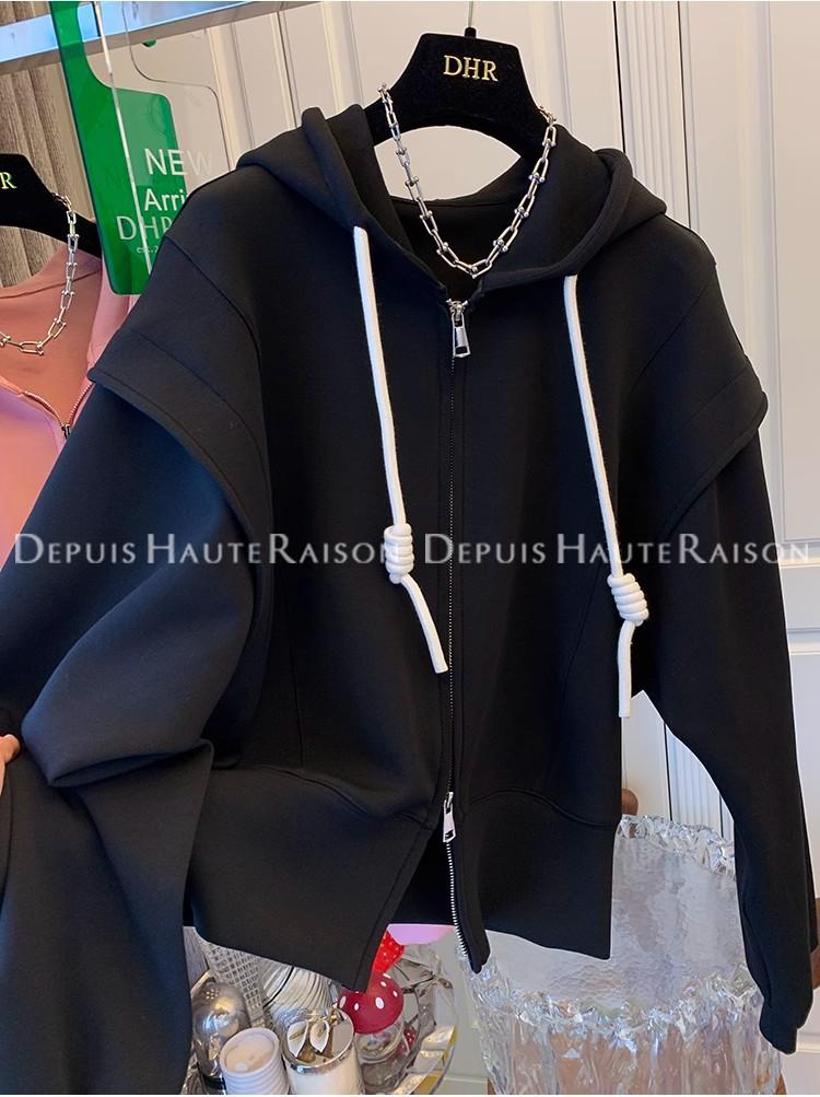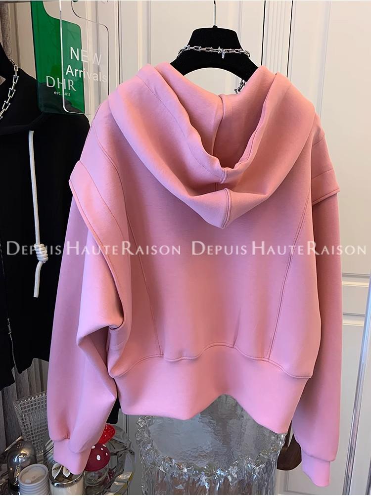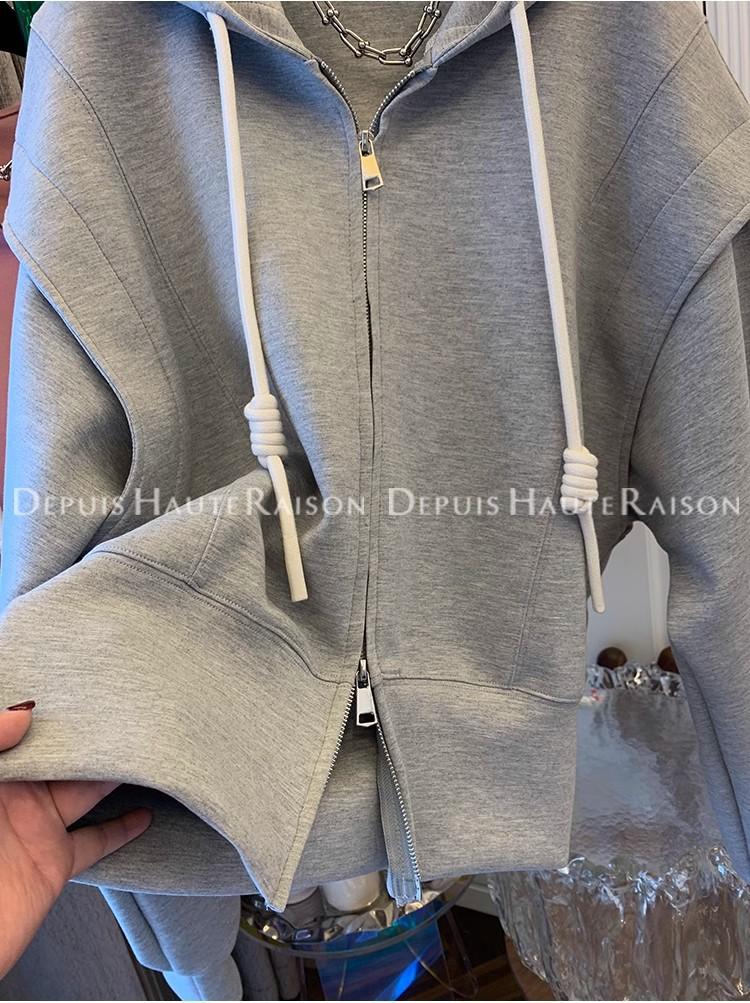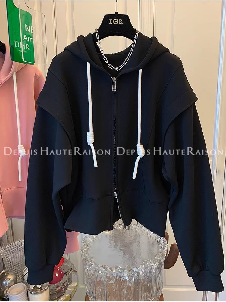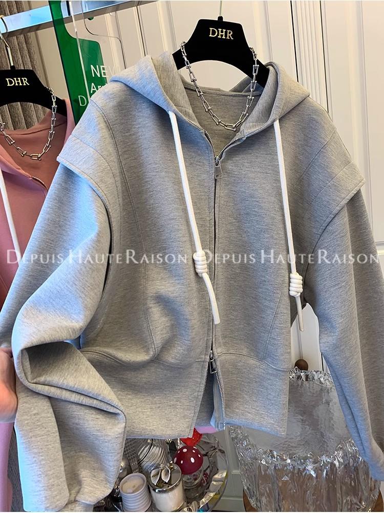 Talla Grande 300 Jin Cárdigan con Cremallera Doble Sudadera con Capucha para Mujer Primavera y Otoño Suelta Petite Estilo Perezoso Chaqueta Tendencia