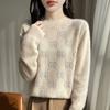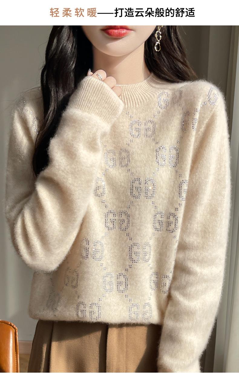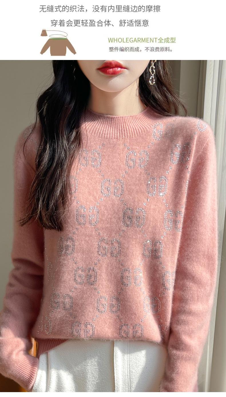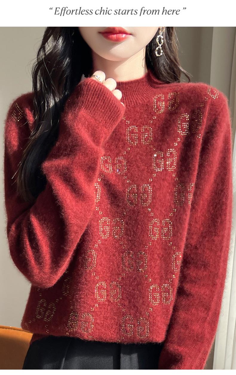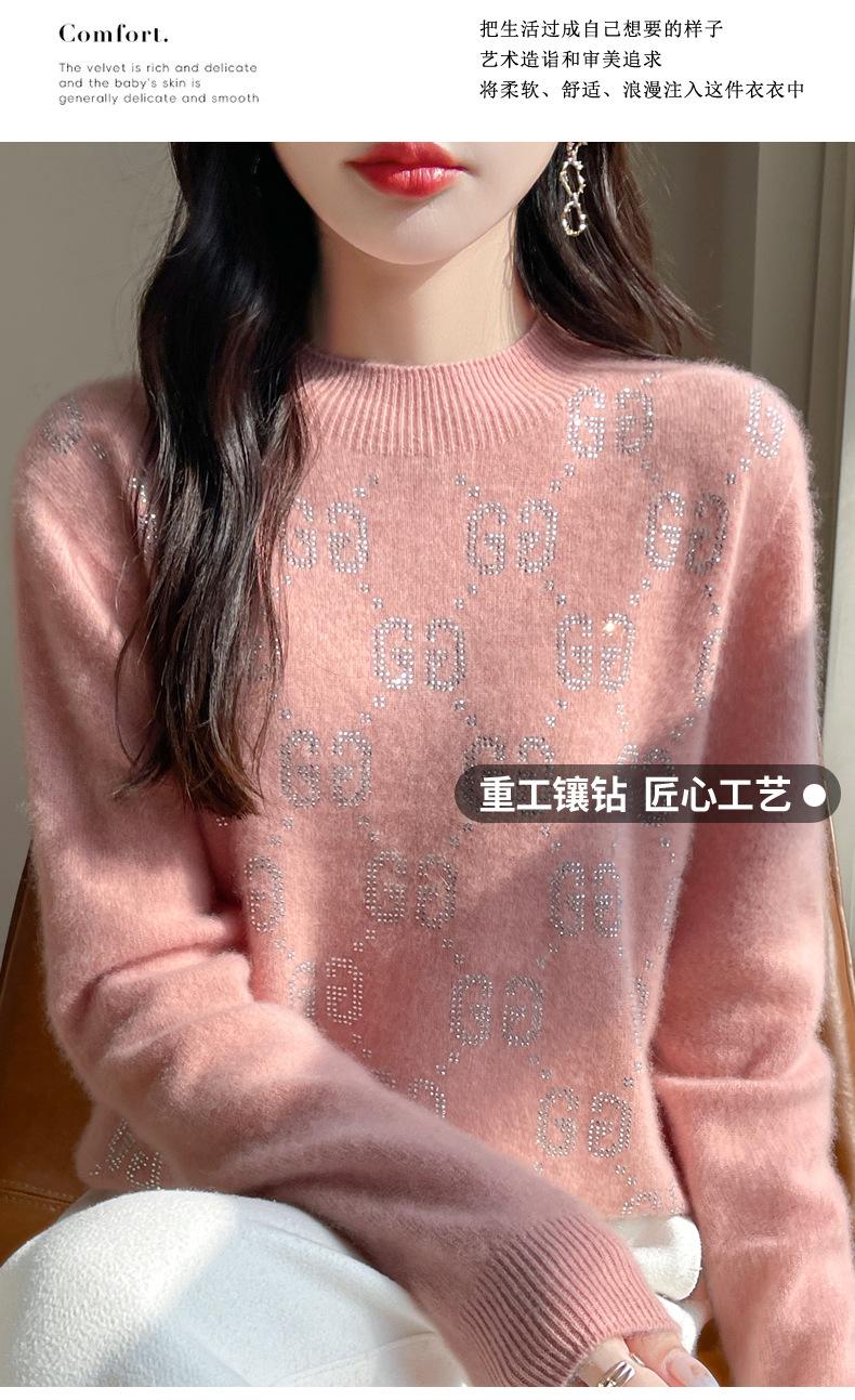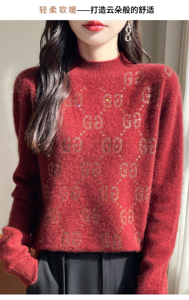 2025 Nuevo Suéter Pulóver de Primera Línea para Mujer Listo para Usar de Medio Cuello Alto con Pedrería Hot-Fix de Color Sólido Holgado Tejido de Lana Pura Camiseta Base