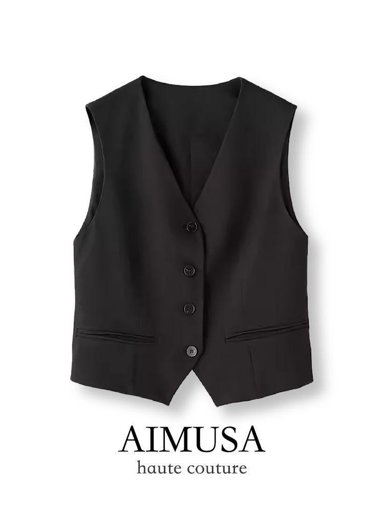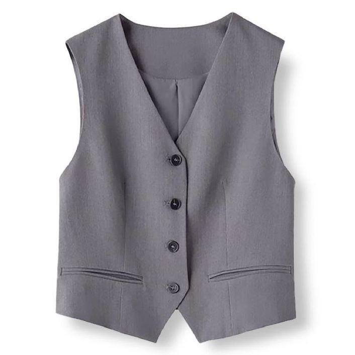 AIMUSA 25 Estilo Minimalista de Primavera y Otoño Chaleco de Traje Gris para Mujer Nuevo Sentido del Diseño Nicho Top sin Mangas