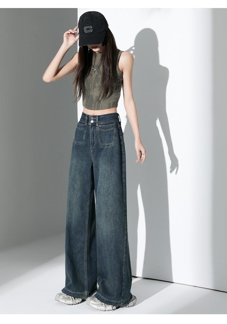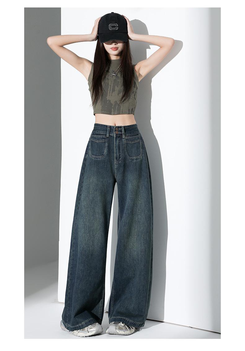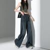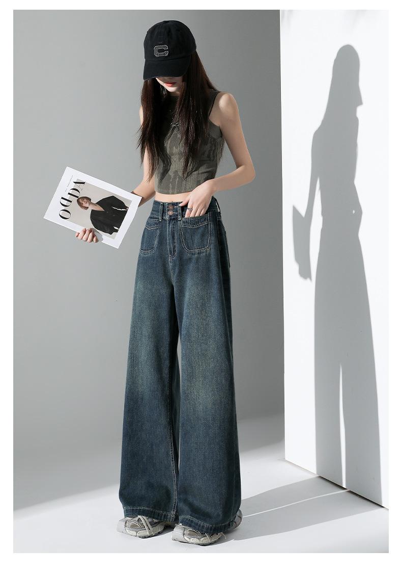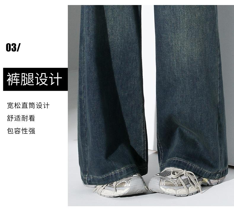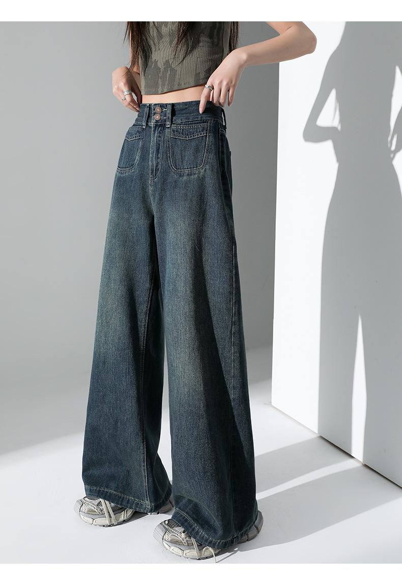 Xintang Fábrica de Mezclilla Directo Clásico Doble Botón Retro Suelto Pantalones Pierna Ancha Drapeado Arrastre Moda Nuevo