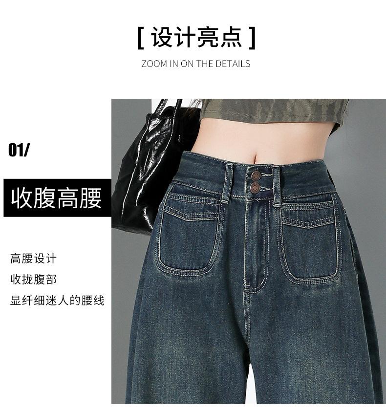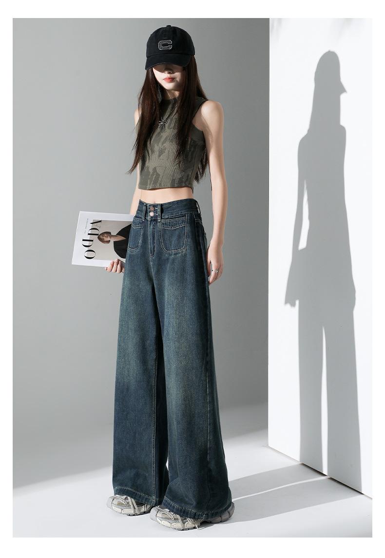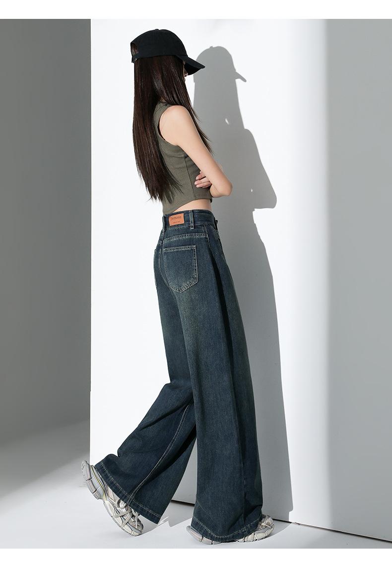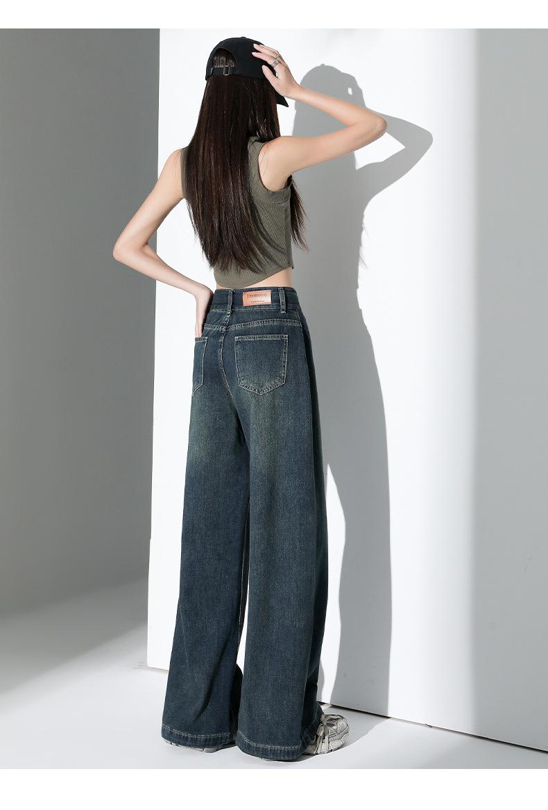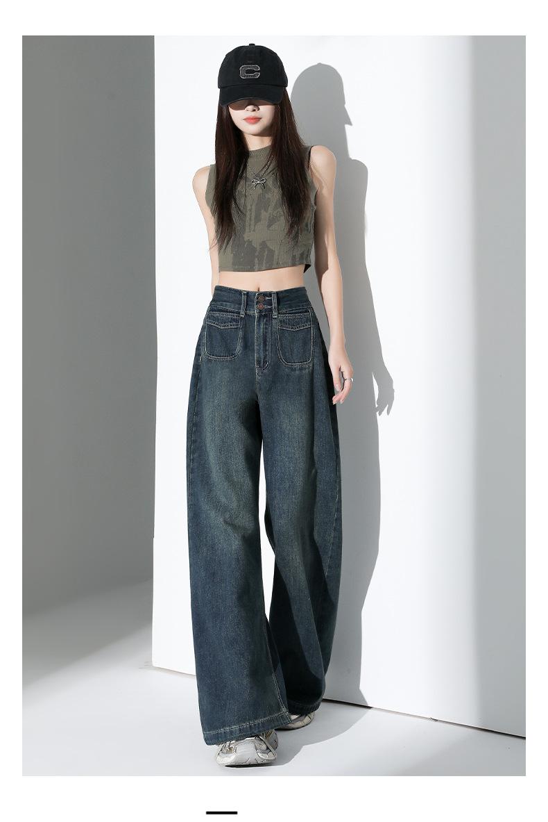 Xintang Fábrica de Mezclilla Directo Clásico Doble Botón Retro Suelto Pantalones Pierna Ancha Drapeado Arrastre Moda Nuevo