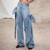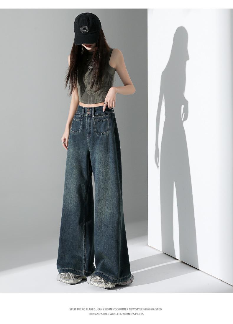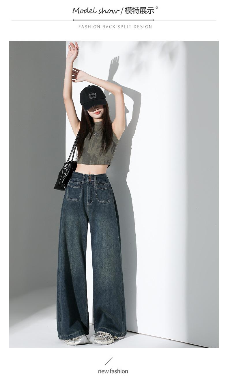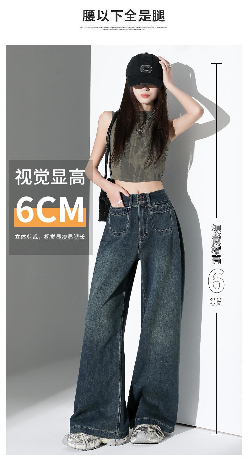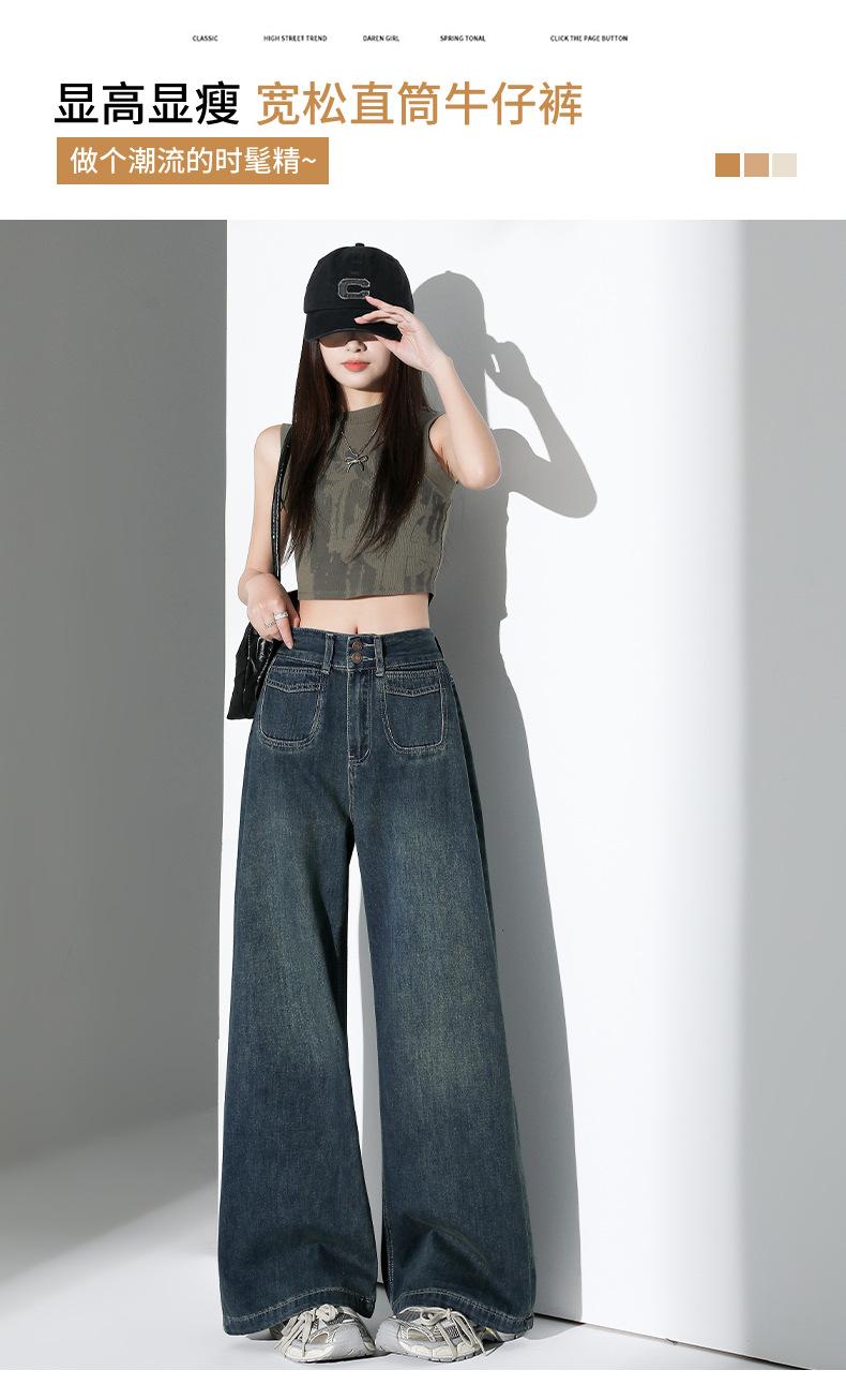 Xintang Fábrica de Mezclilla Directo Clásico Doble Botón Retro Suelto Pantalones Pierna Ancha Drapeado Arrastre Moda Nuevo