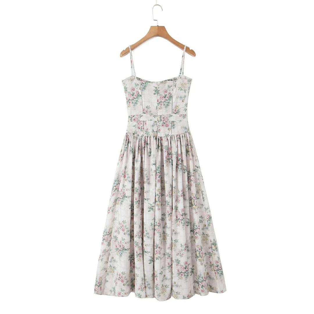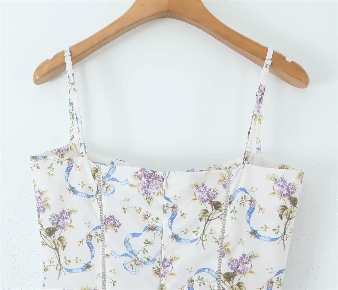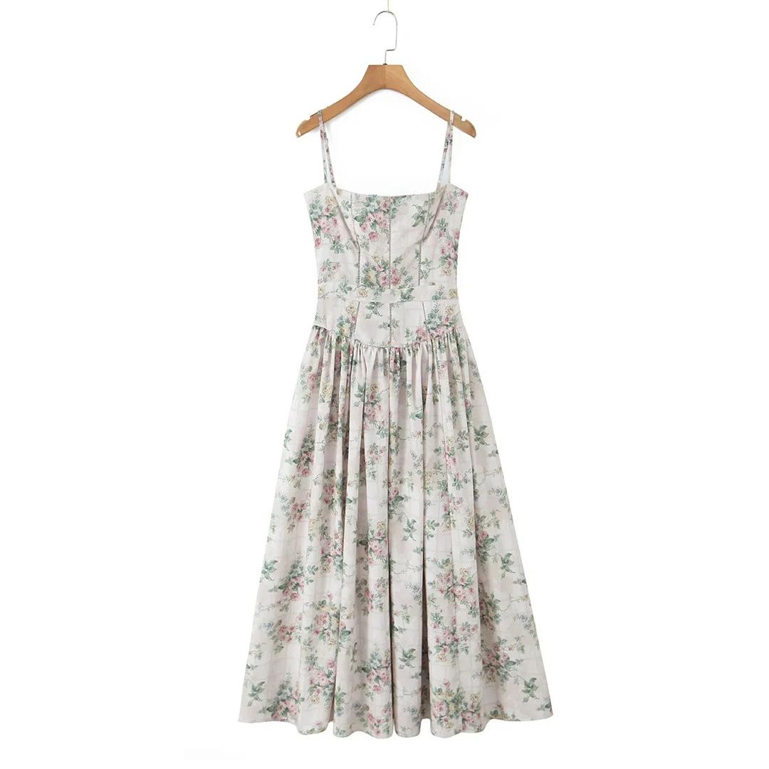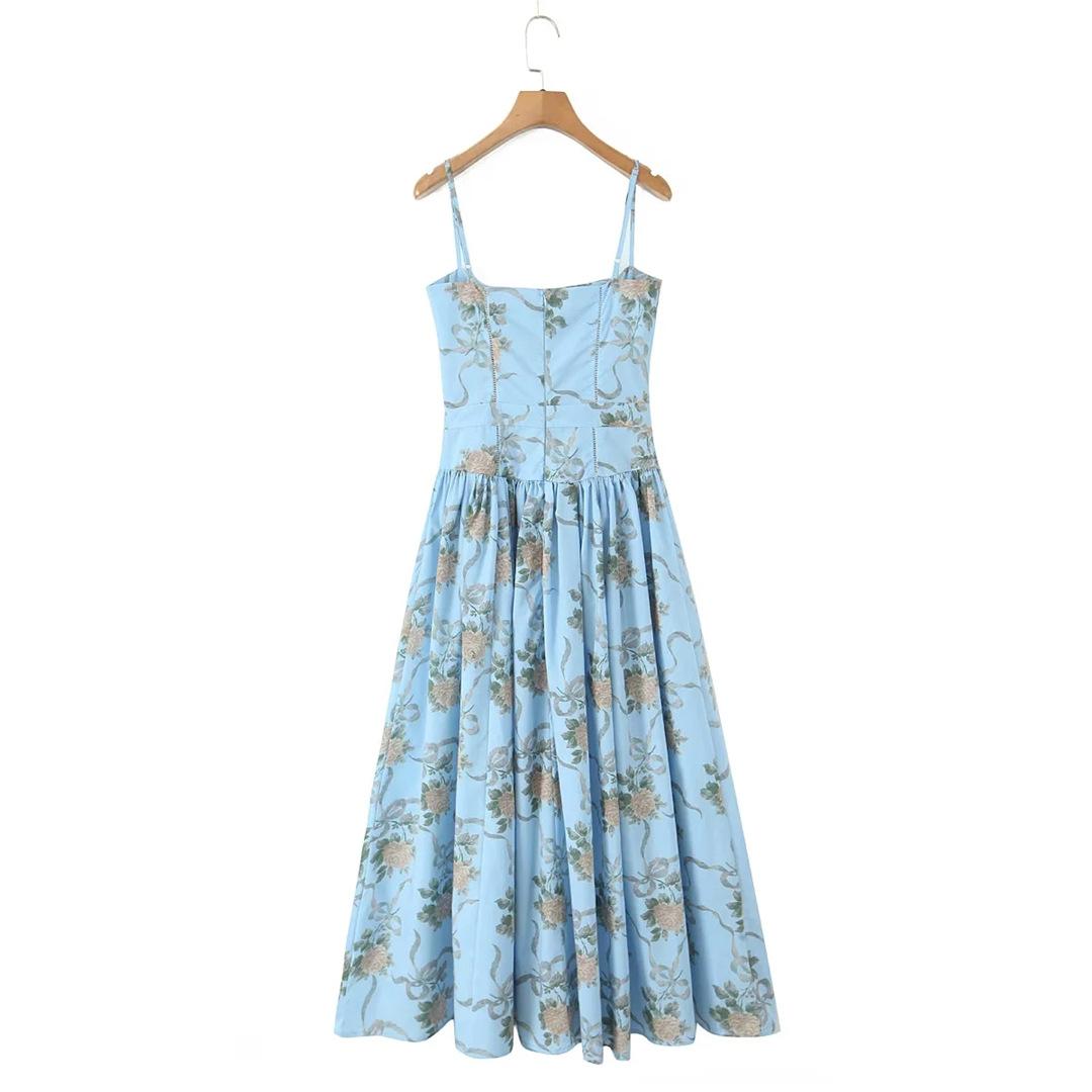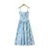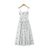 Vestido de Tirantes Vacaciones Americanas Junto al Mar Europeo y Americano Sexy Cintura Ajustada Estampado Falda Larga Plisada Por Encima de la Rodilla
