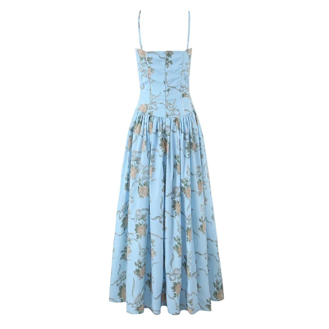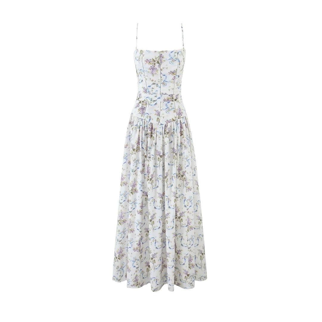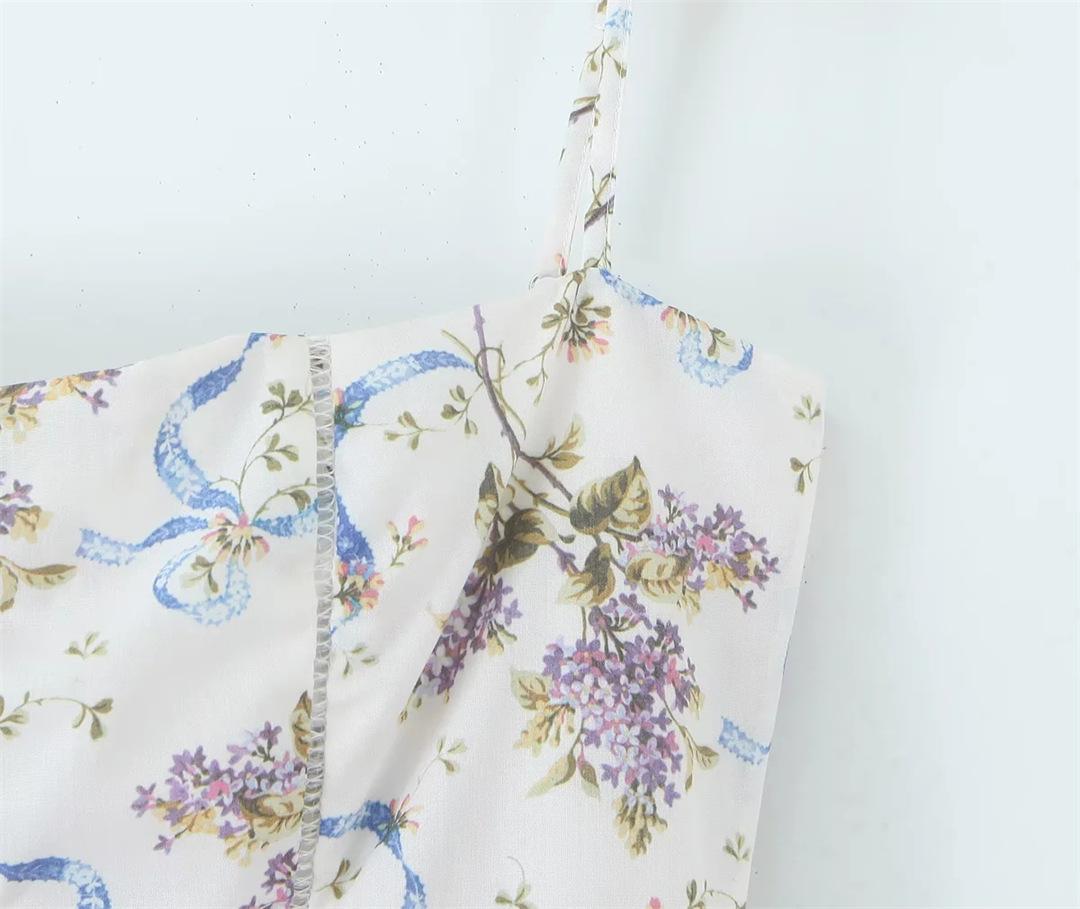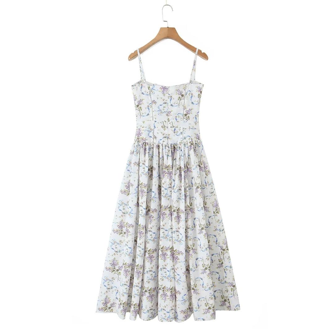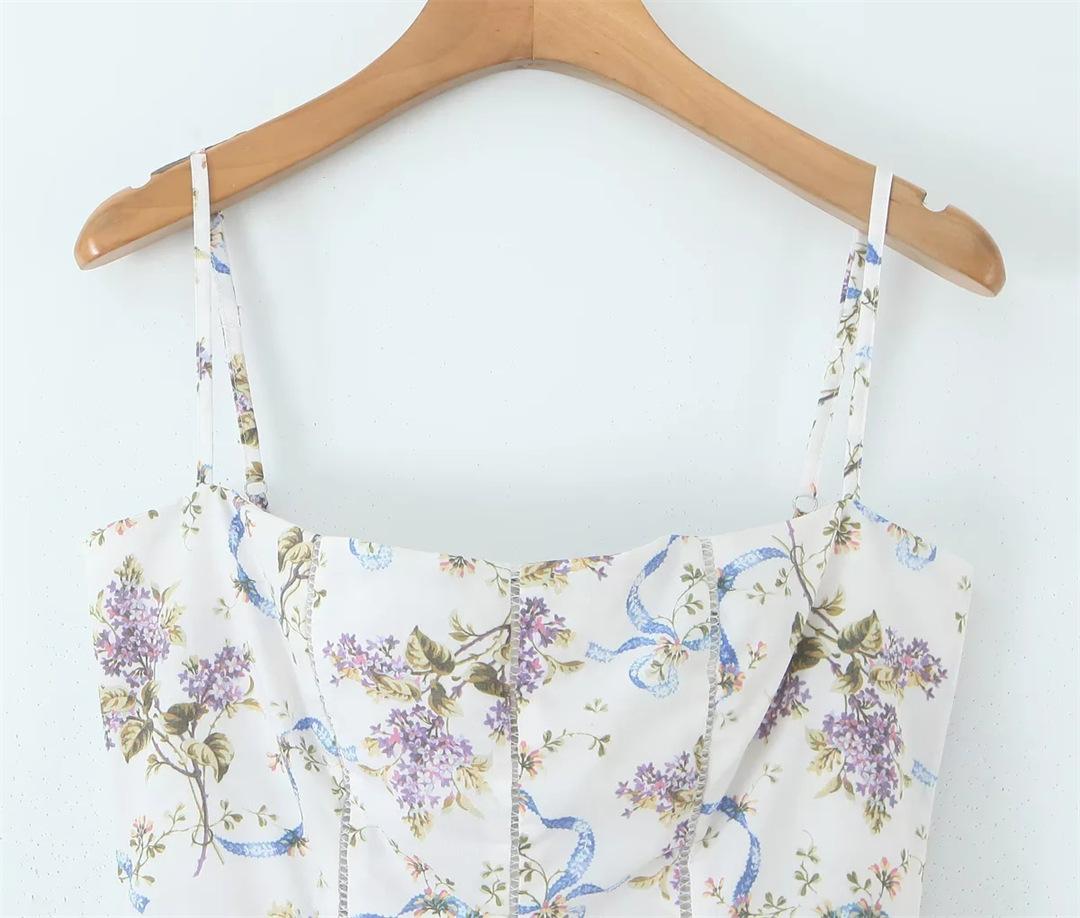 Vestido de Tirantes Vacaciones Americanas Junto al Mar Europeo y Americano Sexy Cintura Ajustada Estampado Falda Larga Plisada Por Encima de la Rodilla