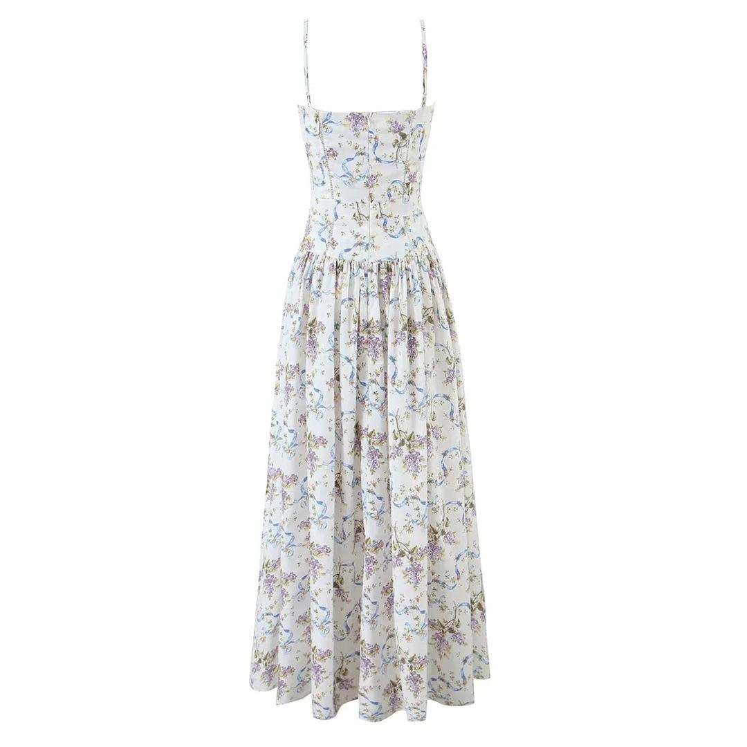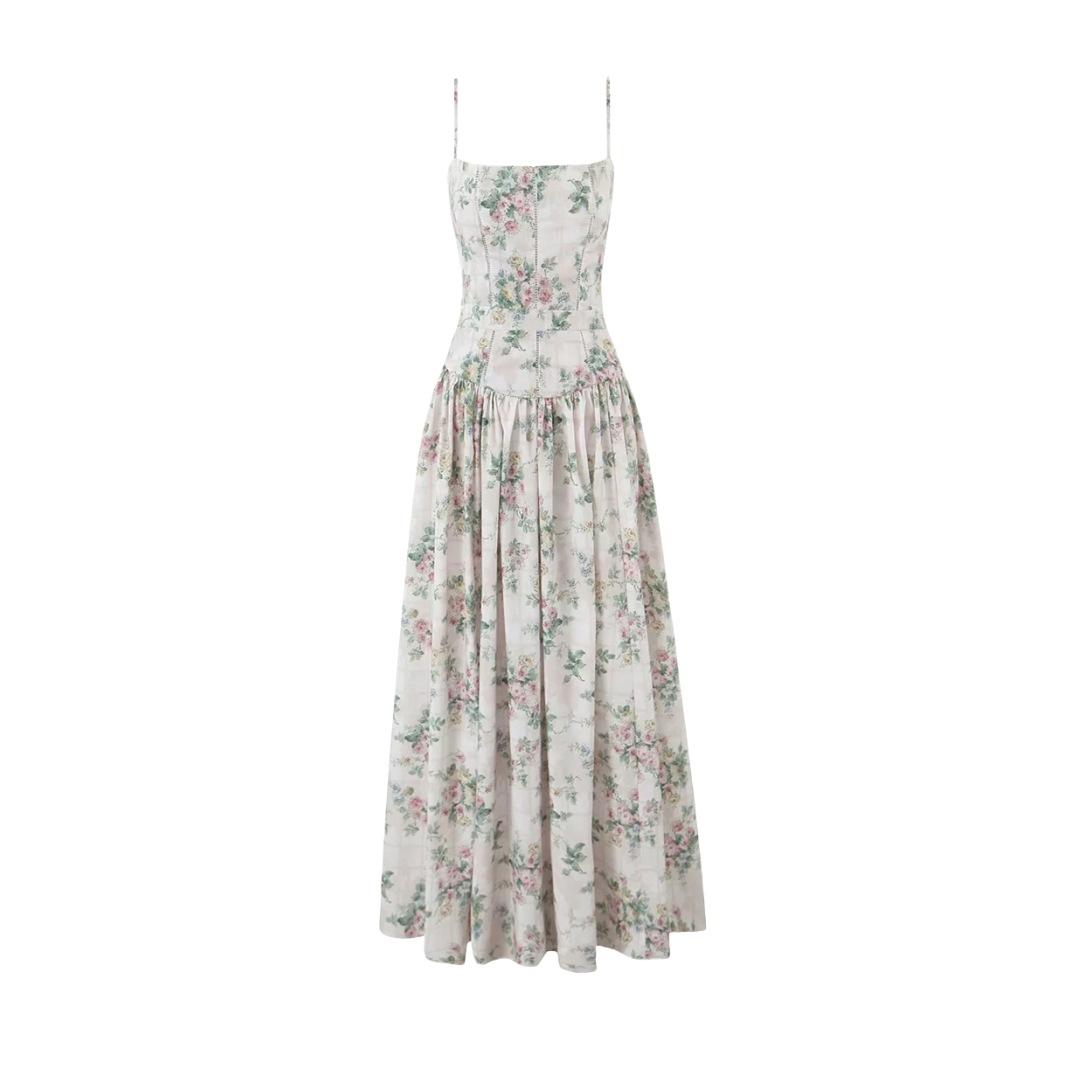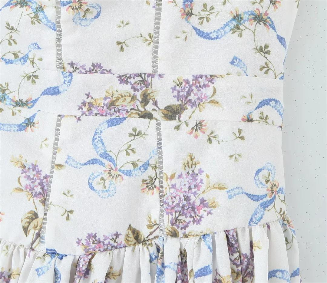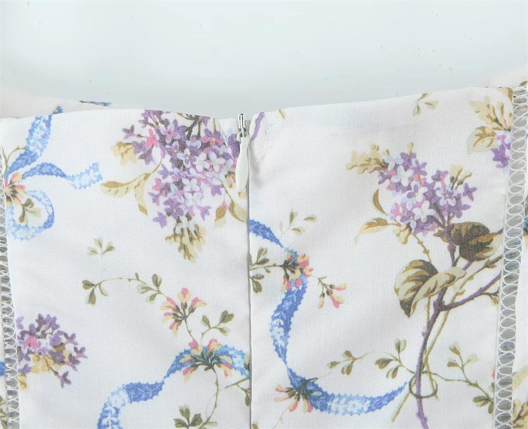 Vestido de Tirantes Vacaciones Americanas Junto al Mar Europeo y Americano Sexy Cintura Ajustada Estampado Falda Larga Plisada Por Encima de la Rodilla