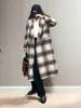 Ropa de Mujer Otoño 2025 Nueva Estilo Europeo y Americano Largo de Lana Bicolor para Mujer Abrigo Grueso