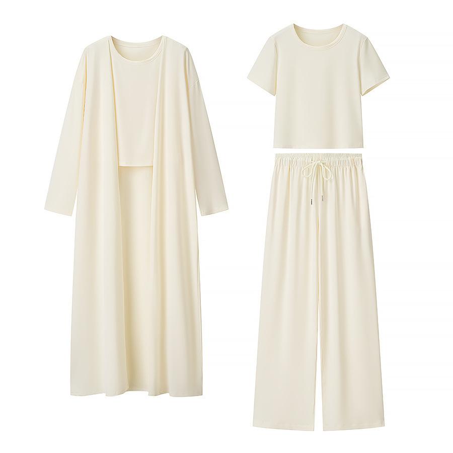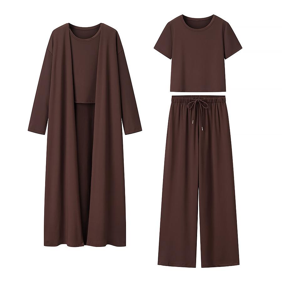 Cárdigan Largo Casual de Verano para Mujer Nuevo Europeo y Americano Transfronterizo Tops de Manga Larga Pantalones de Cintura Alta Conjuntos de Moda