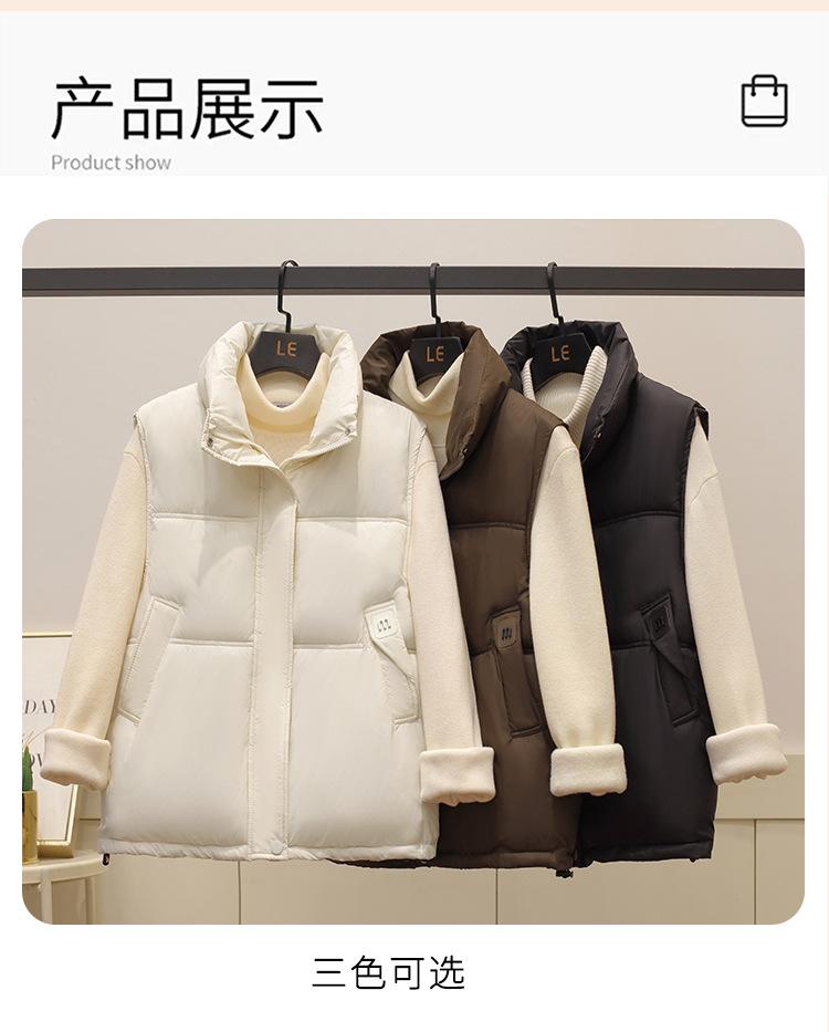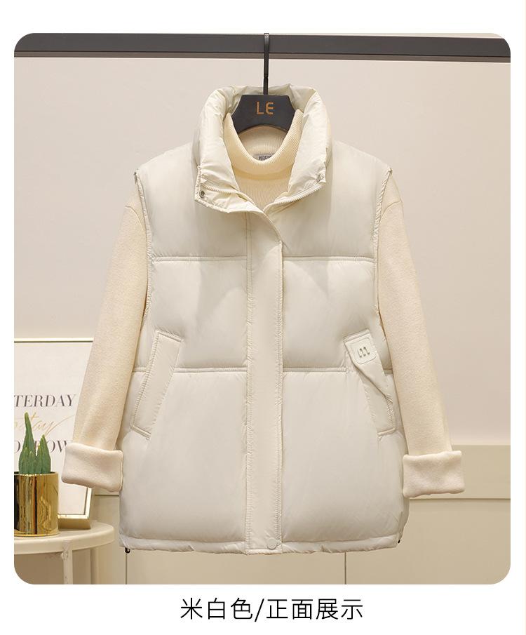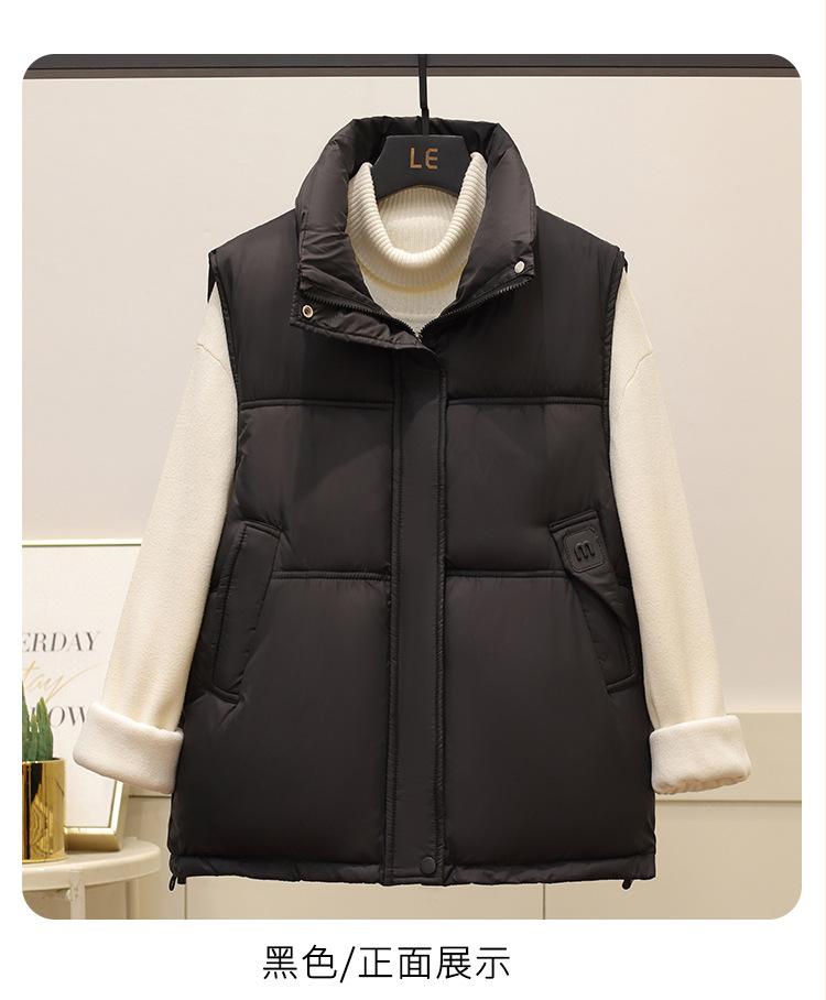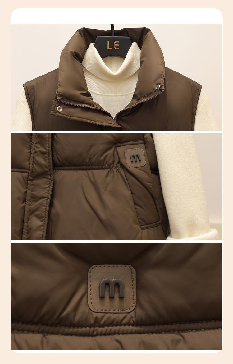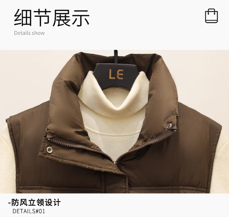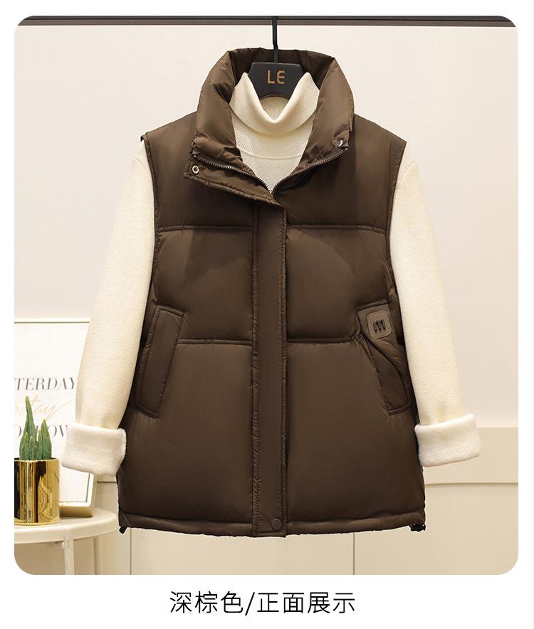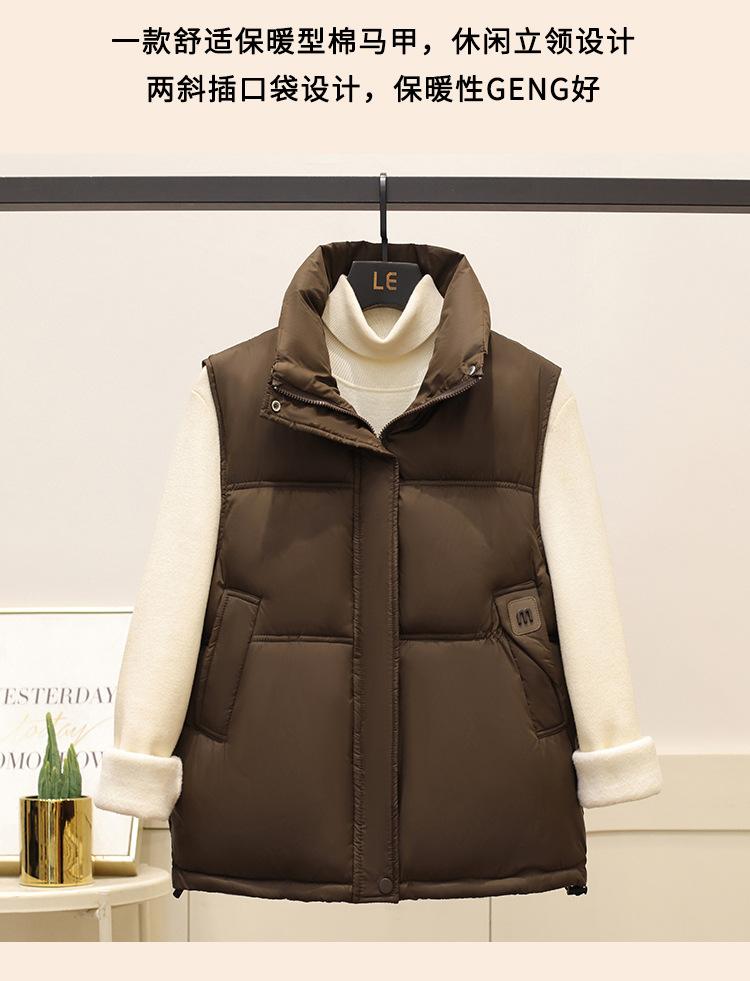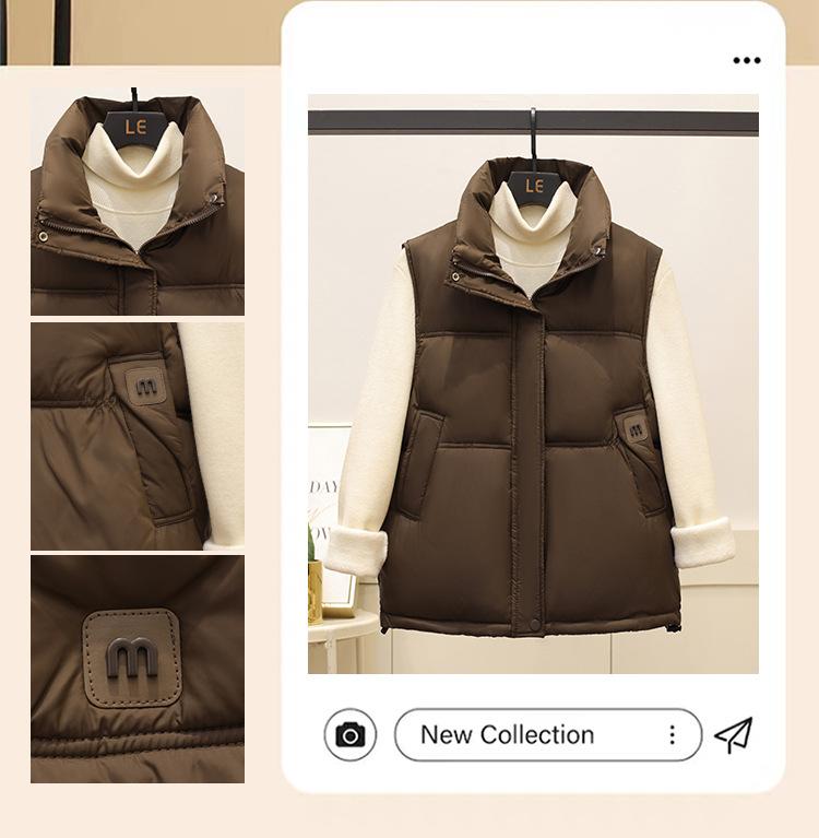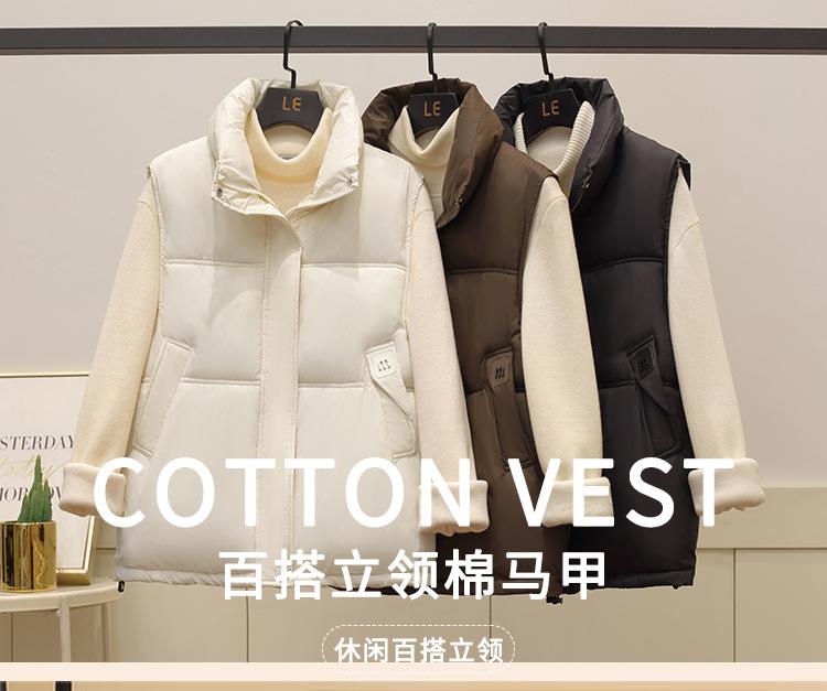 Chaleco de algodón con cuello alto para mujer, estilo corto, nuevo otoño e invierno 2025, estilo coreano, chaleco de algodón con etiqueta, chaqueta sin mangas con temperamento de moda, chaleco de algodón