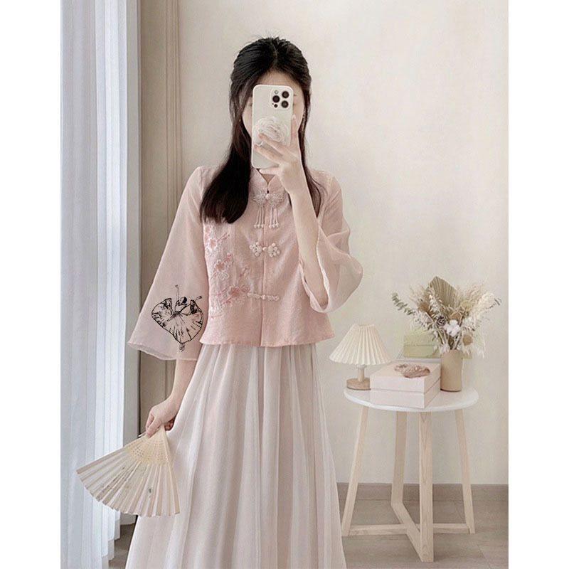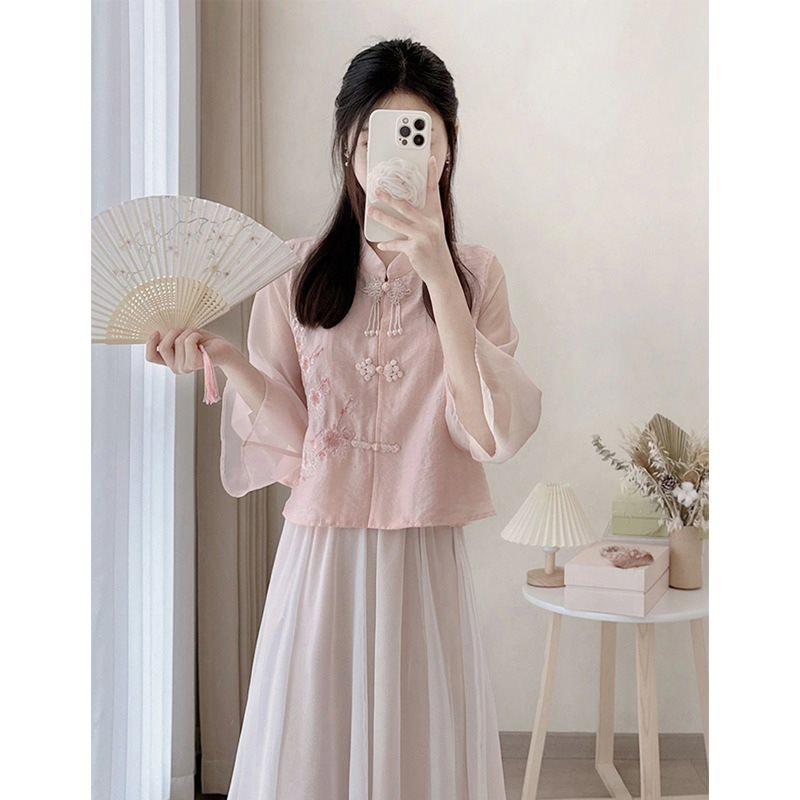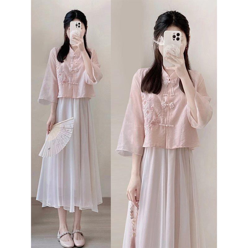 Verano Nuevo Estilo Chino Cheongsam Mejorado Estilo Joven Ropa de Mujer Talla Petite Estilo Nacional Vestido de Té Conjunto de Dos Piezas para Mujer