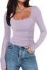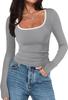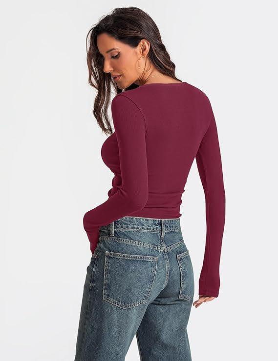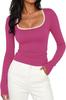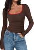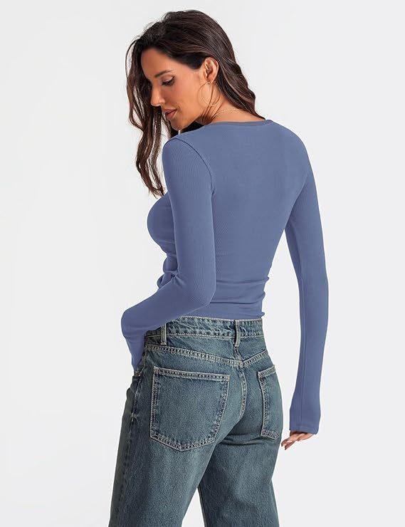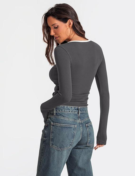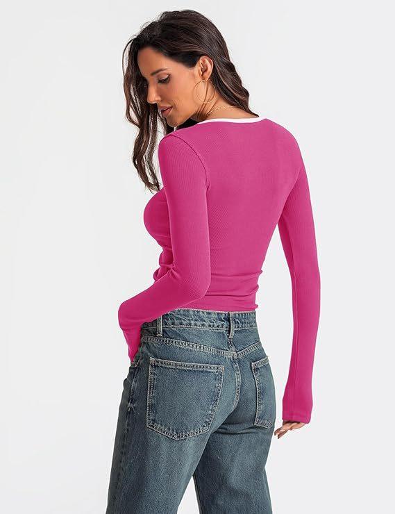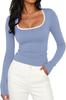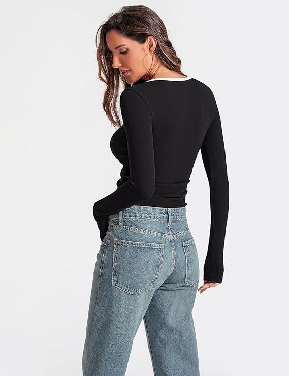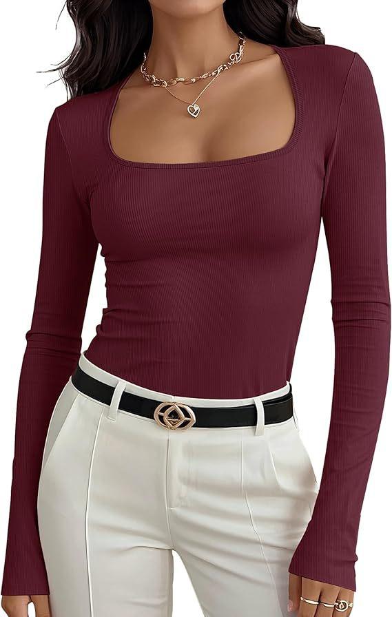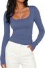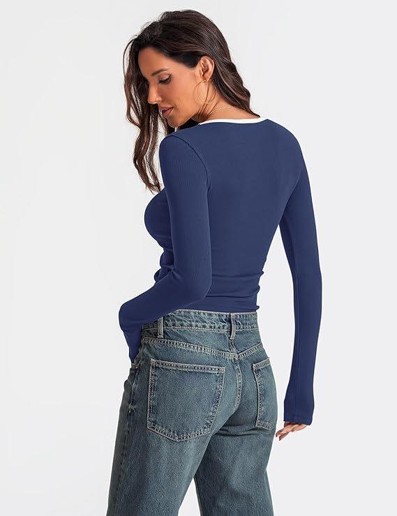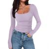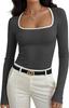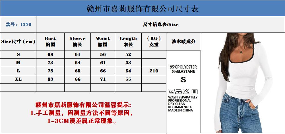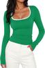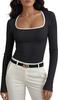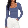 Moda Femenina 2025 Top Básico Casual Bodycon de Manga Larga con Cuello Cuadrado Camisa de Bloques de Color Moda Primavera Otoño Top