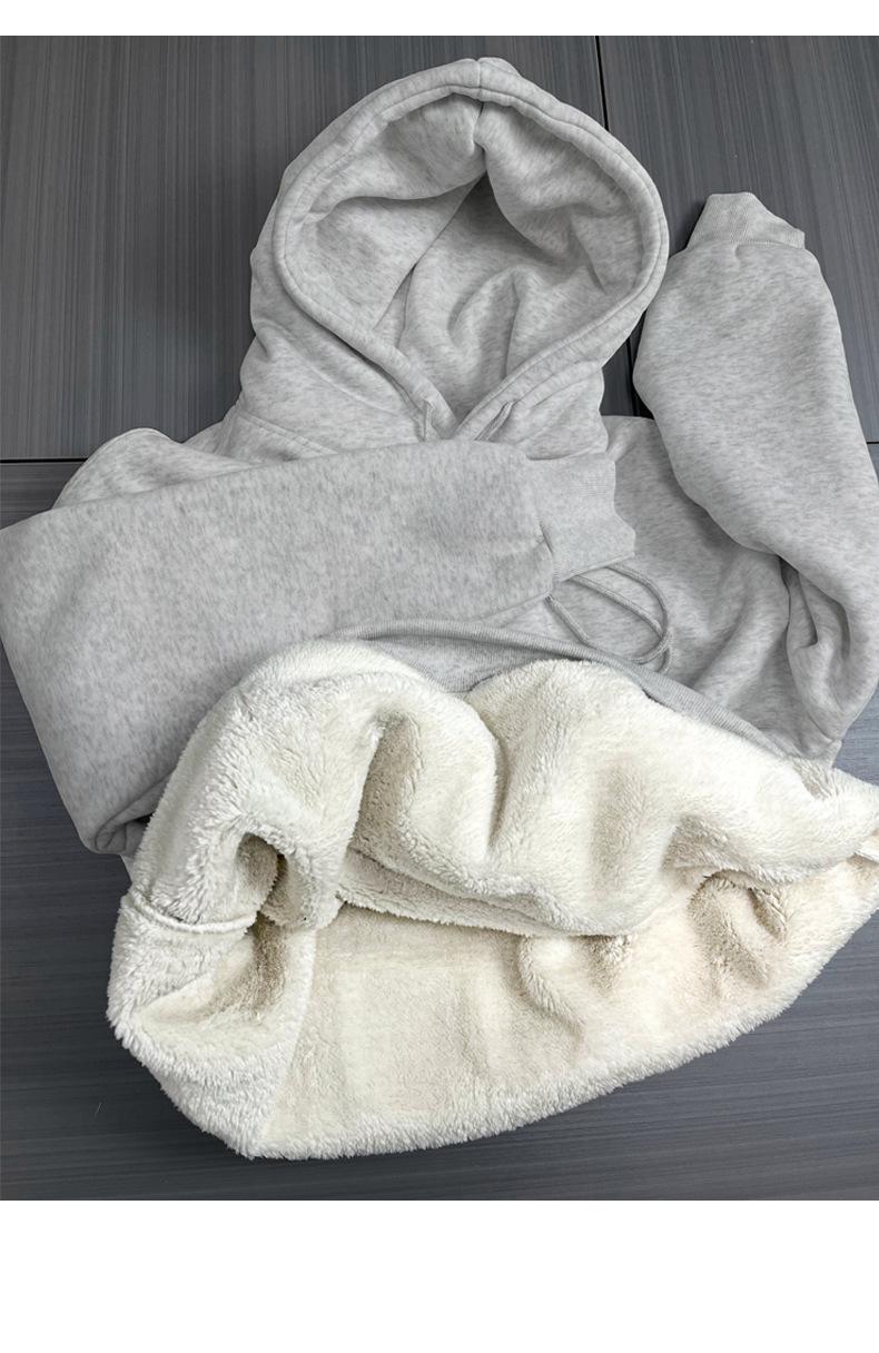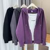 Sudadera con Capucha Gris Mujer Primavera Otoño Delgada Deportiva Casual 2025 Principios de Primavera Nueva Llegada Estilo Caliente Petite Lana de Cordero
