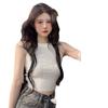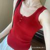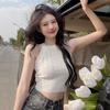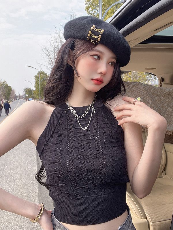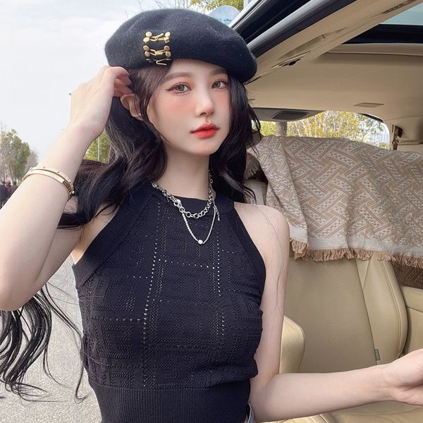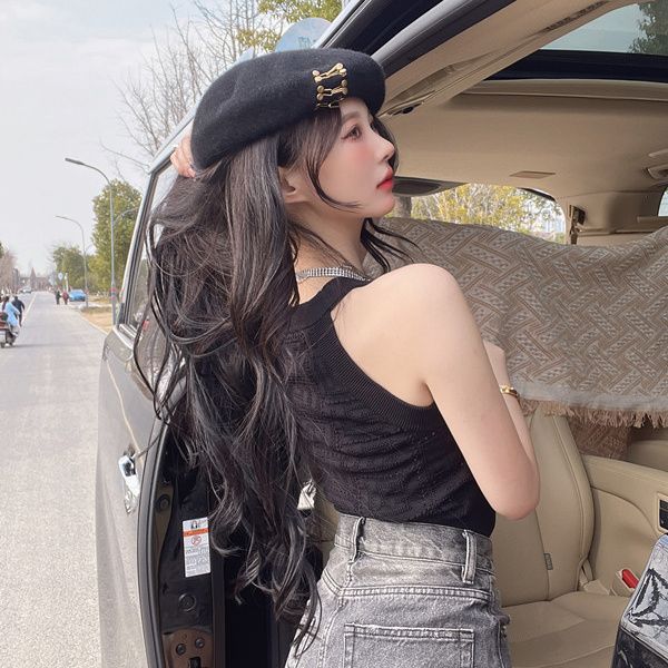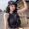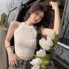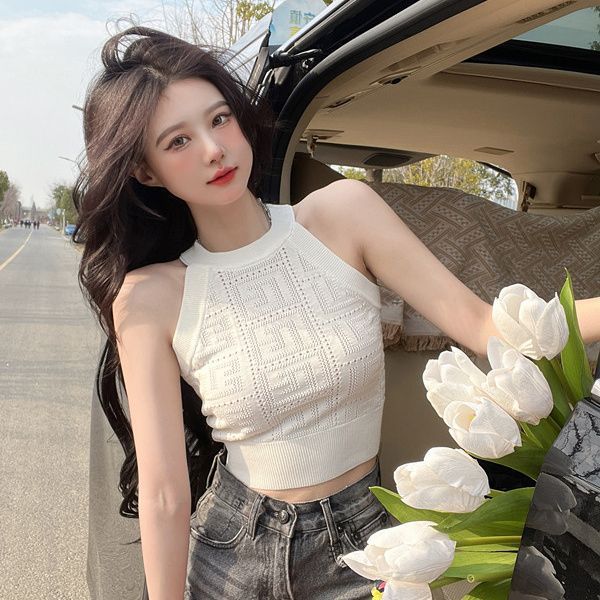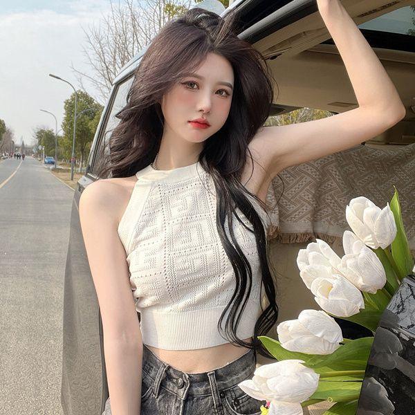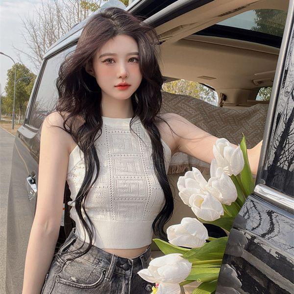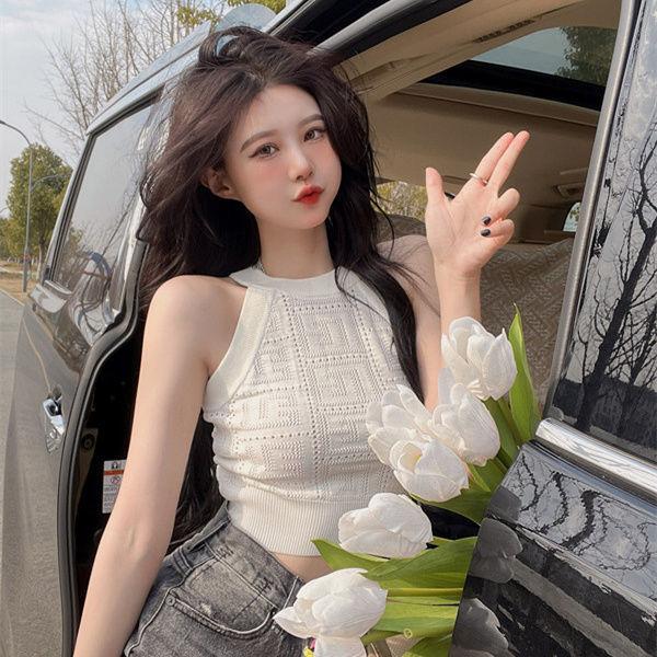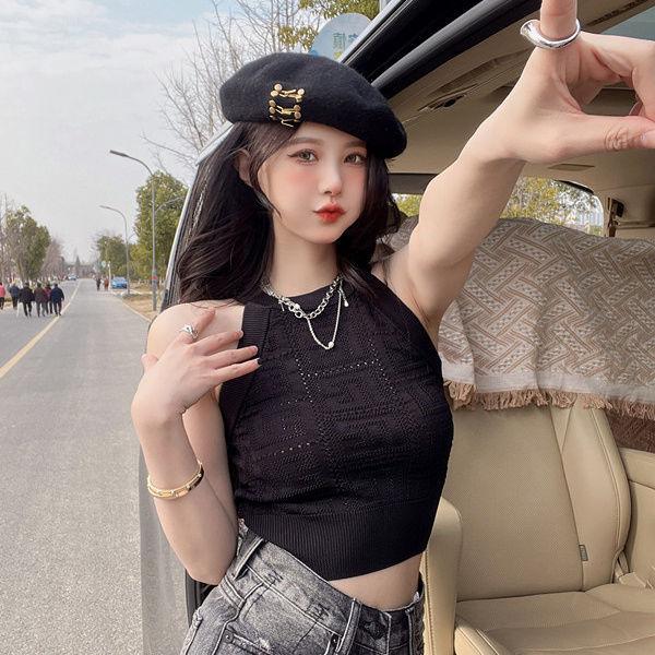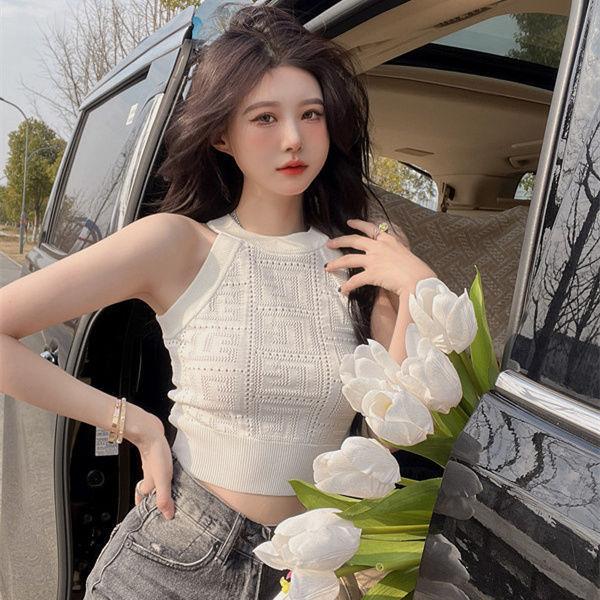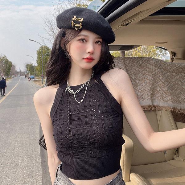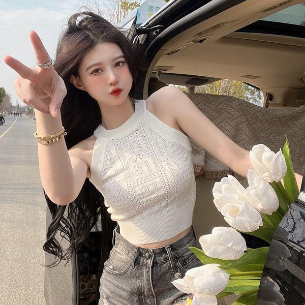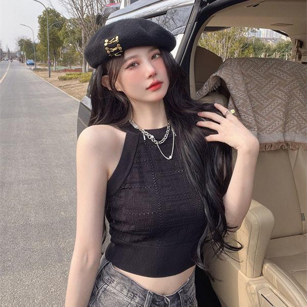 Top versátil adelgazante 2024 texturizado tridimensional nuevo estilo corto verano calado chaleco de punto negro talla única