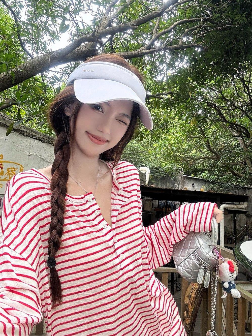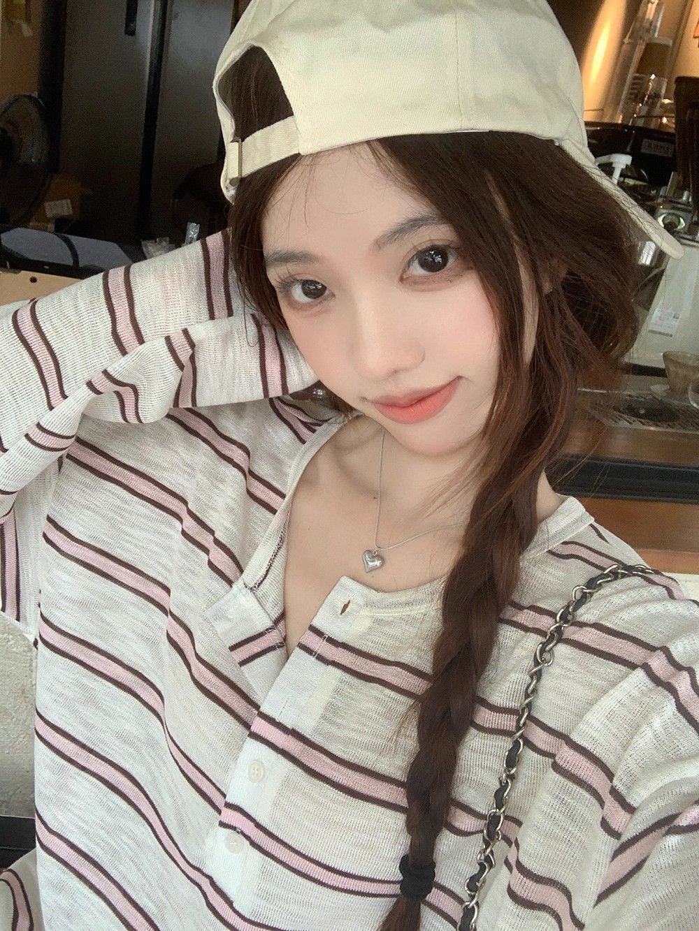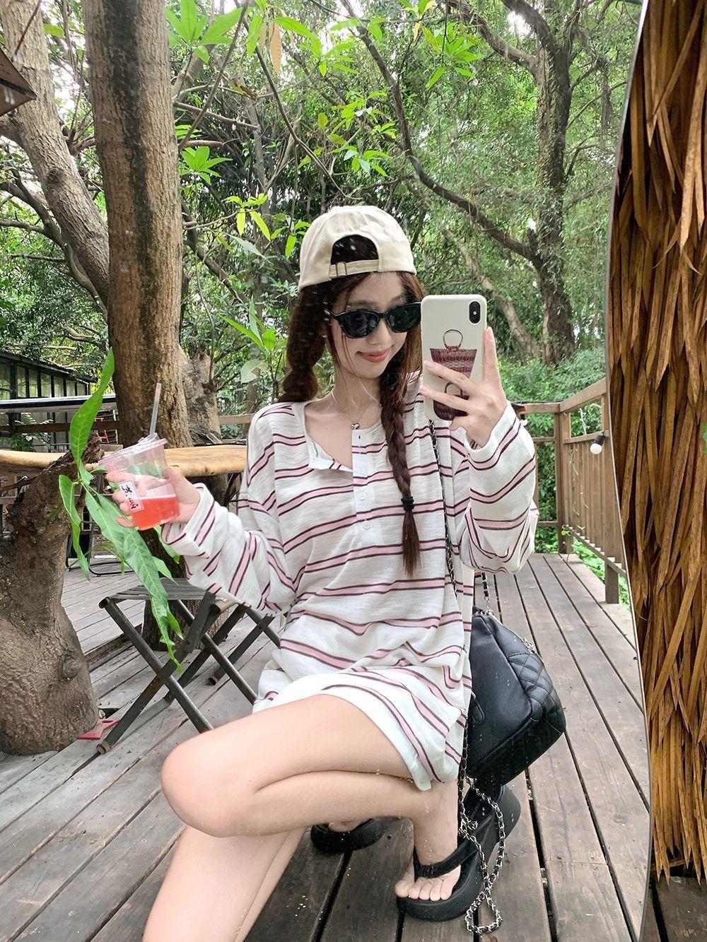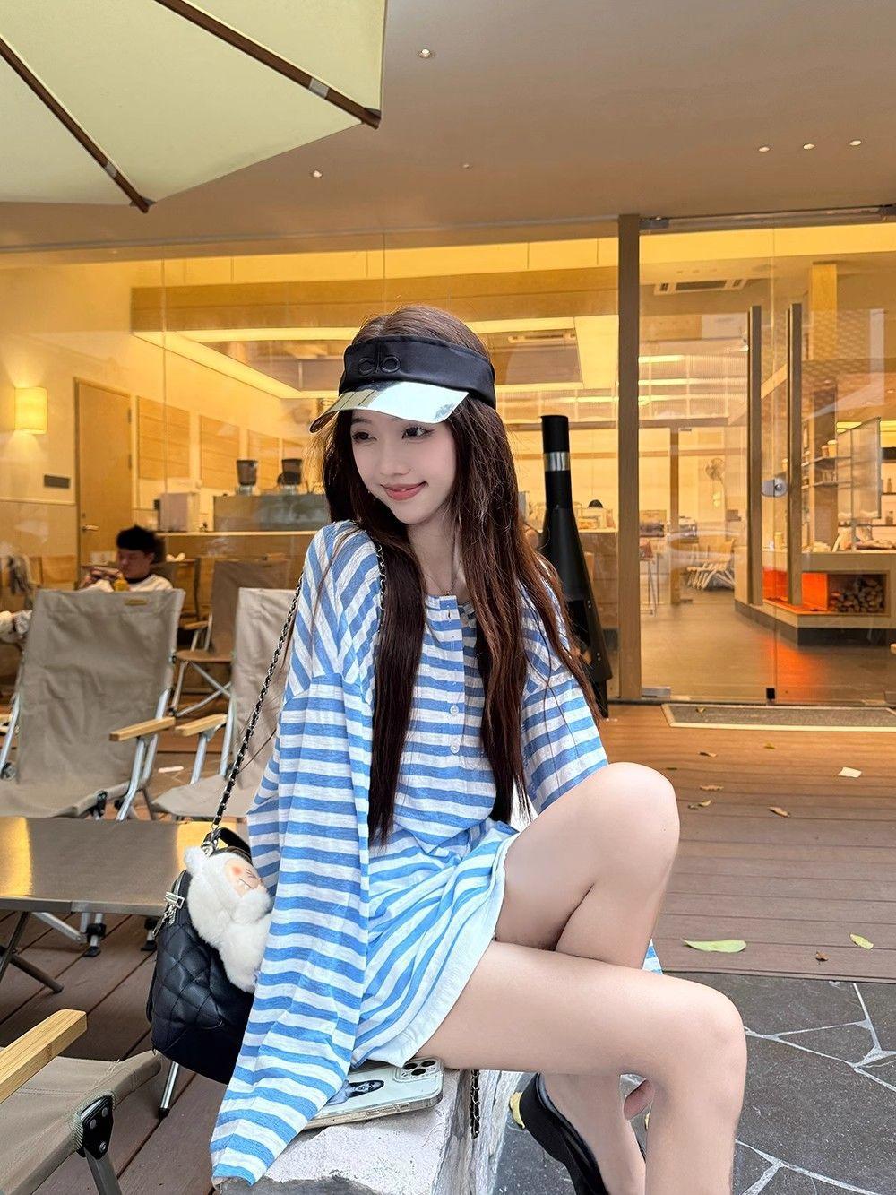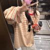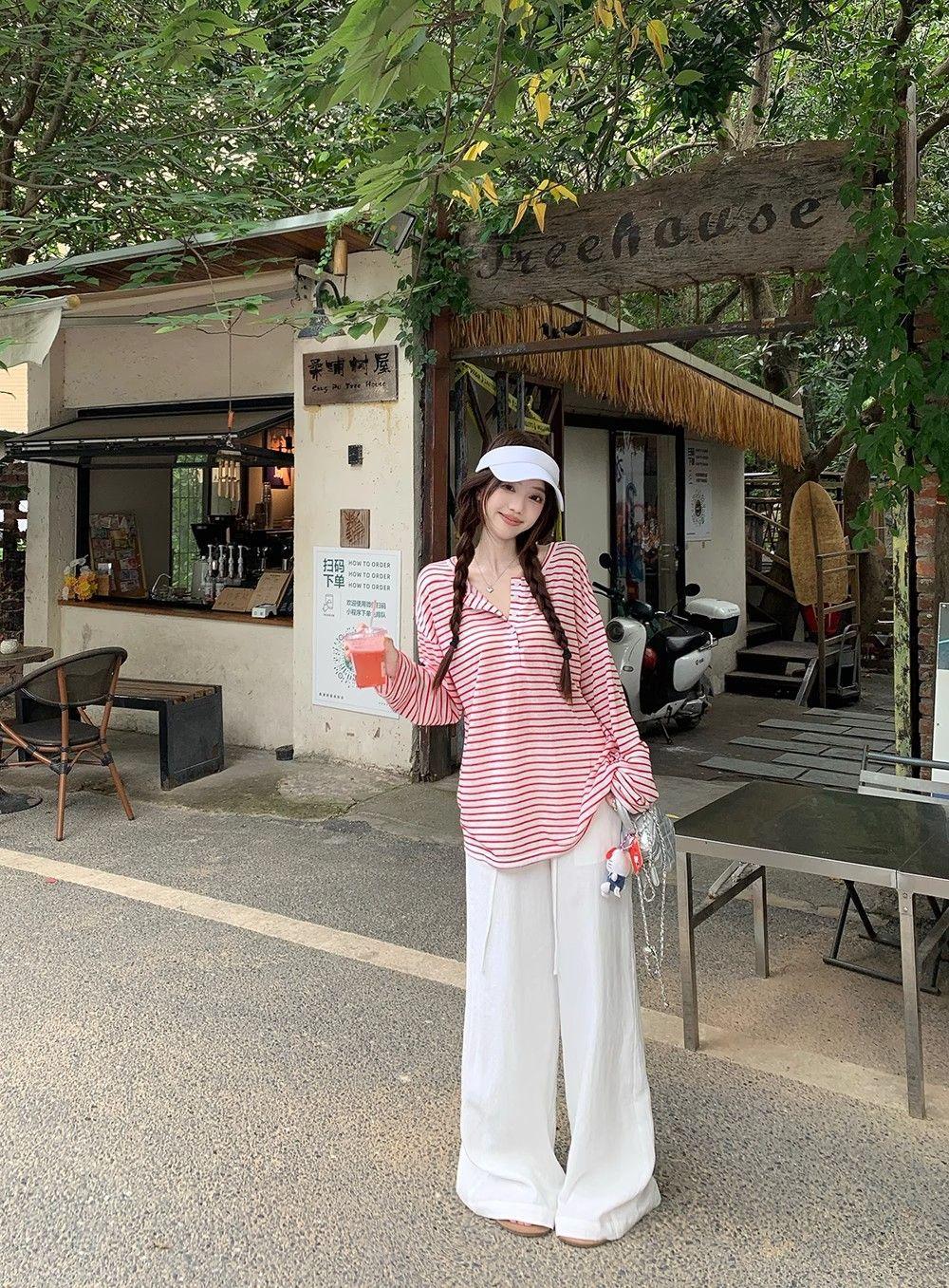 ¡En stock! Camiseta de manga larga a rayas con bloques de color drapeada estilo coreano para mujer, otoño nueva holgada delgada perezosa top cárdigan