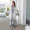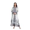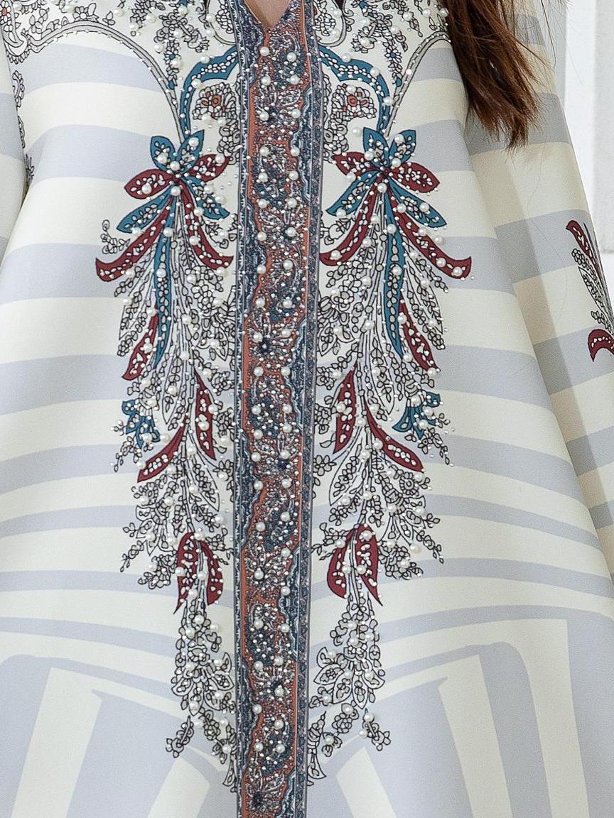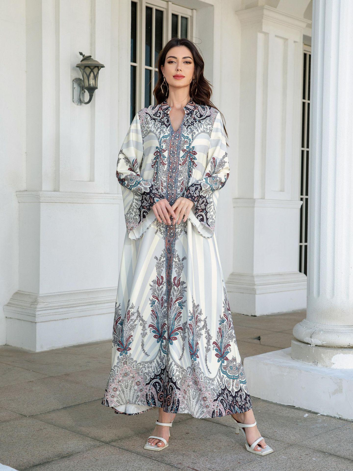 SW1101 Nuevo Vestido de Mujer de Oriente Medio Cuello Mao Transfronterizo Moda Musulmana Temperamento Abaya Vestido Largo Estampado con Perlas Termoadheridas