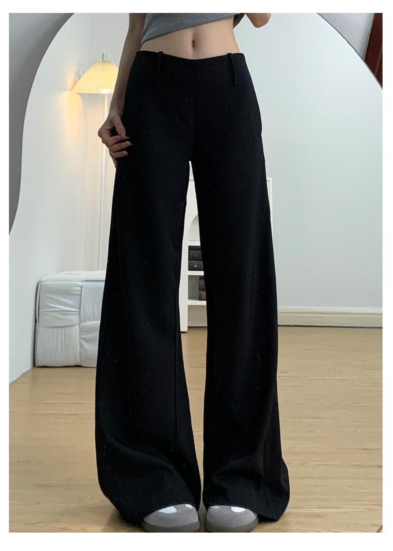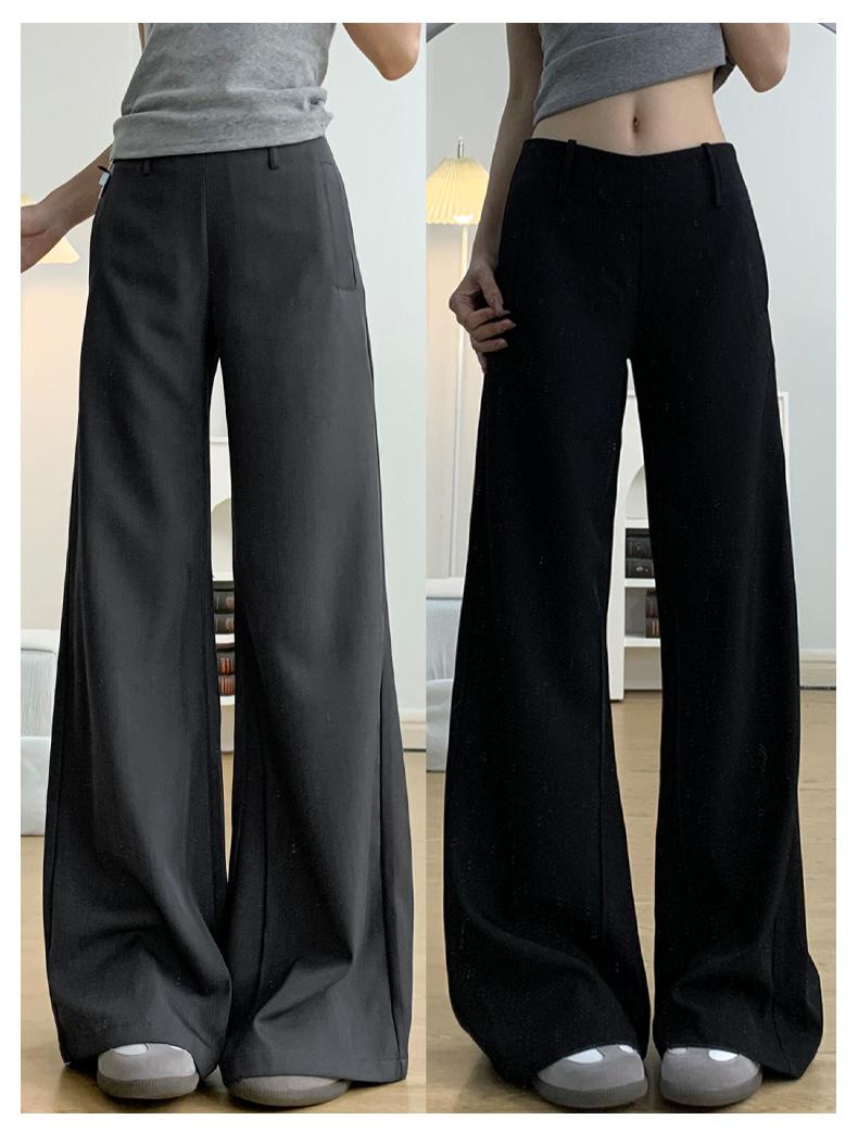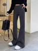 Pantalones de Traje Acampanados Micro Grises para Mujer Otoño 2025 Nuevo Cintura Baja Adelgazantes Drapeados Americanos Hot Girl de Gama Alta Bootcut