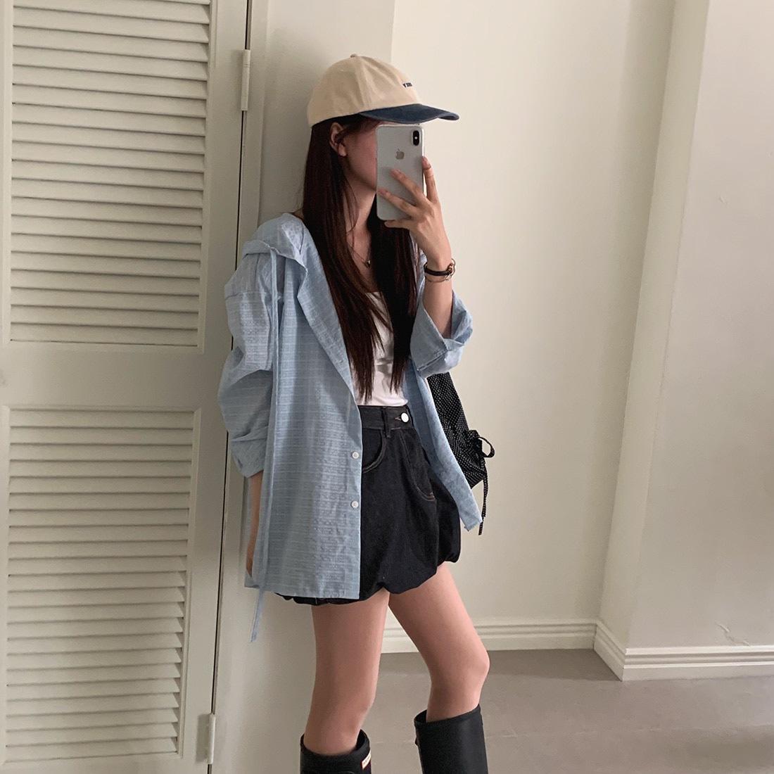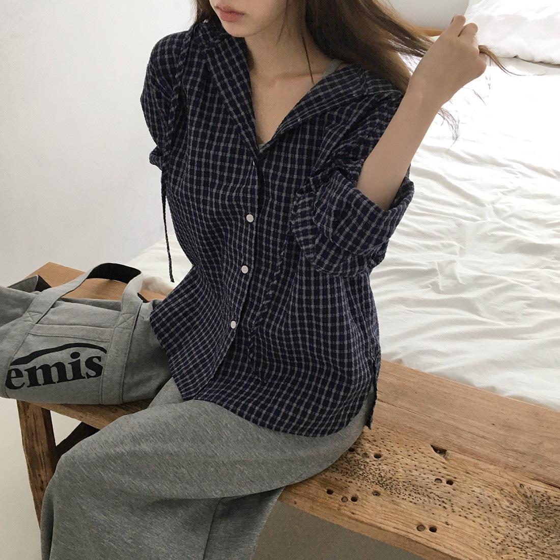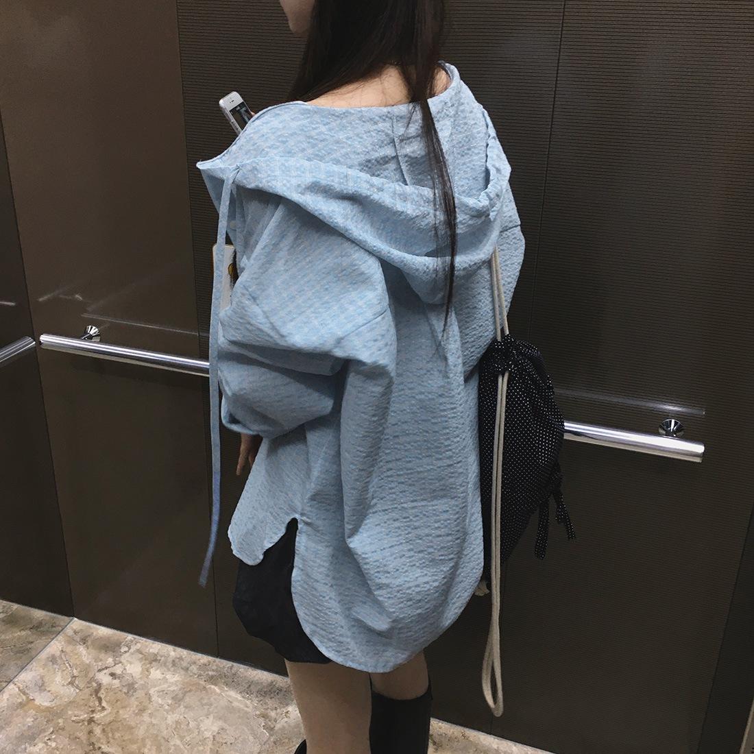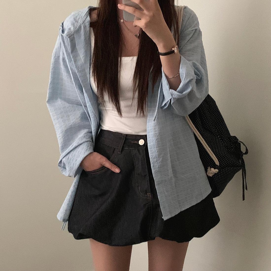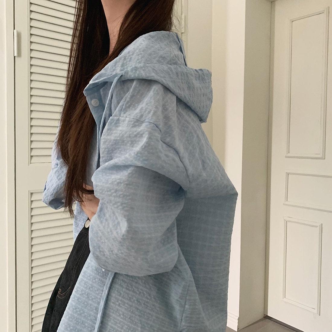 Chic coreano principios de otoño nuevo delgado protector solar universitario retro a cuadros relajado camisa con capucha