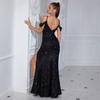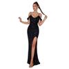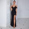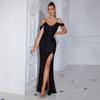 Nuevo vestido sexy de lentejuelas de cintura alta con abertura estilo europeo y americano, con tirantes y hombros descubiertos, para fiesta de banquete, anfitrión, ajustado, de noche