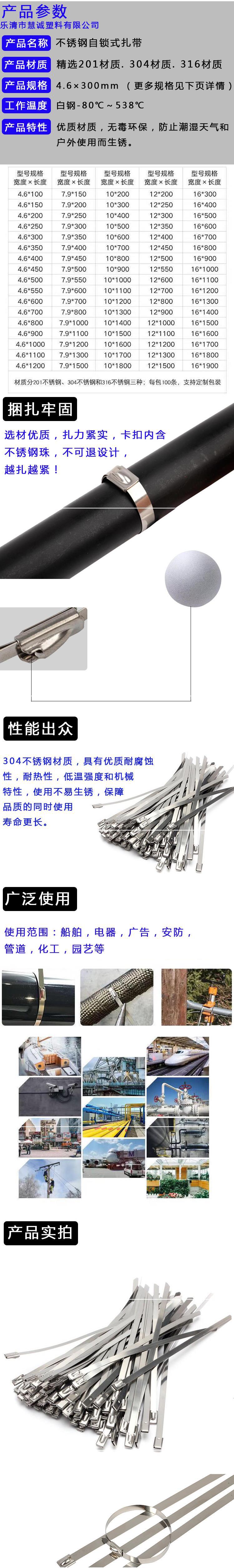 Fabricante Venta al por Mayor Bridas para Cables de Acero Inoxidable 304 Bridas para Cables Marinas Bridas para Cables Autoblocantes 4.6*250MM