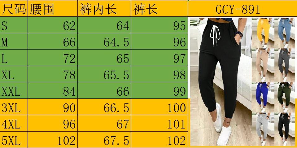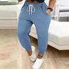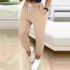 2024 Transfronterizo Europeo y Americano Nuevo Cintura Alta con Cordones Pierna Pequeña con Puño para Mujer Color Sólido Versátil Temperamento Casual Pantalones Largos