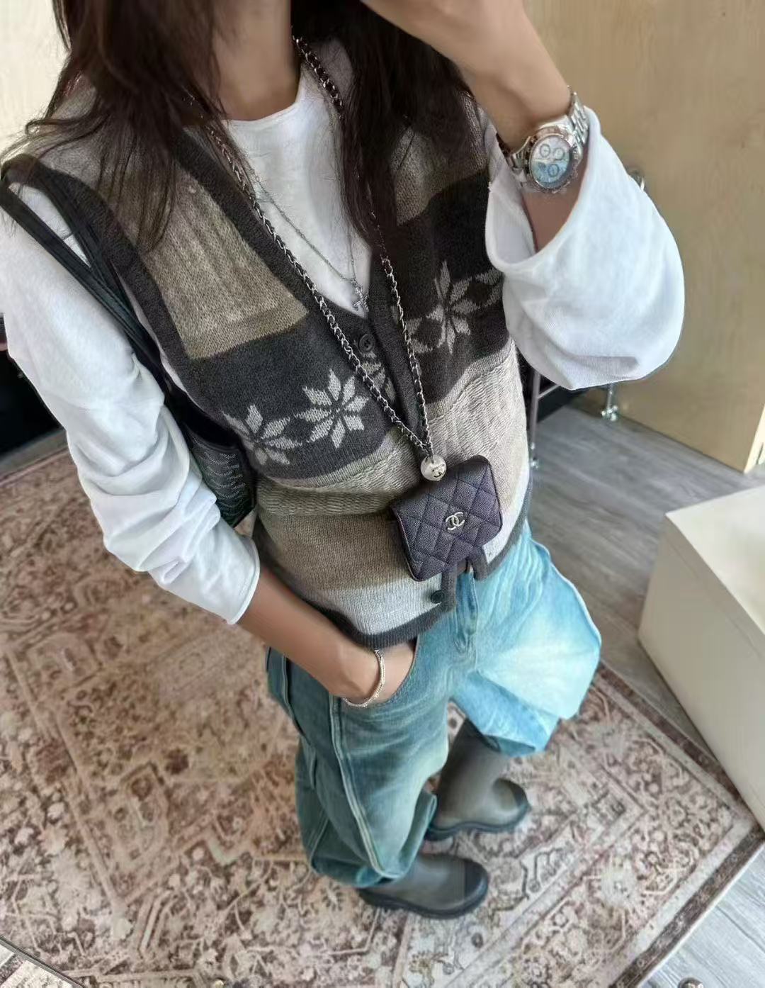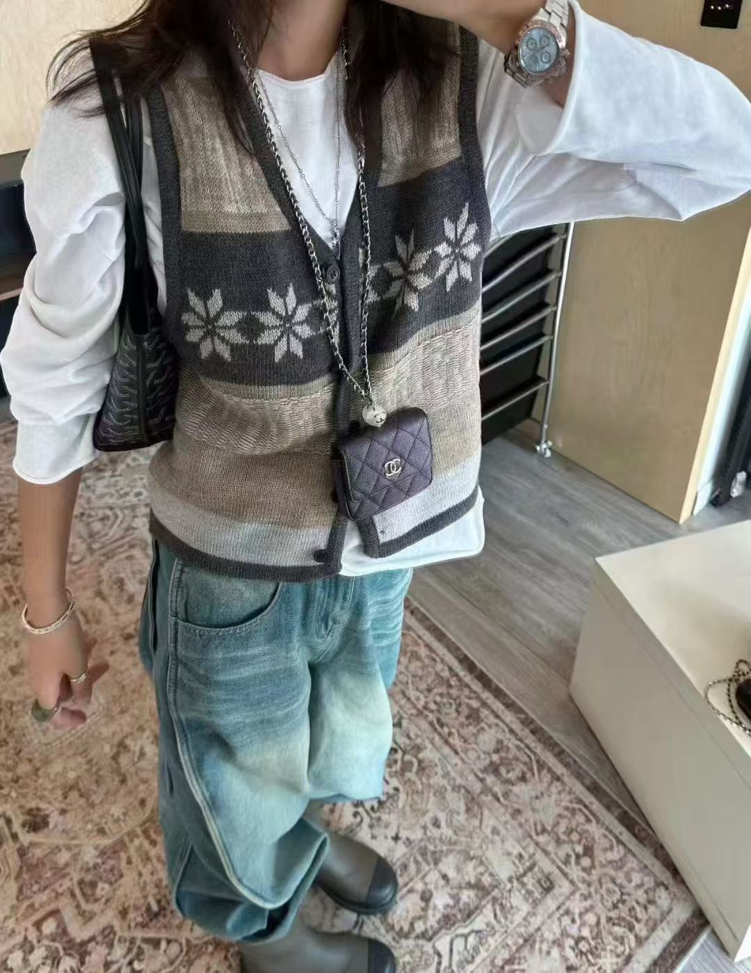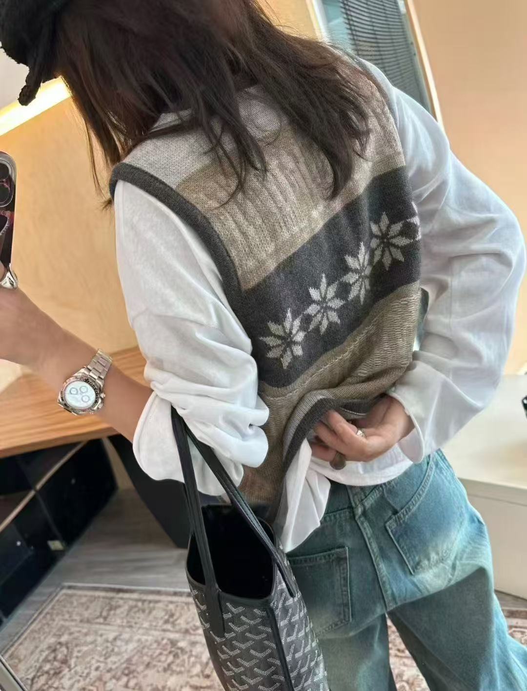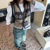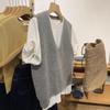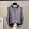 Chaleco cárdigan de punto con cuello en V para mujer 2025 otoño nuevo holgado exterior chaleco suéter retro bloque de color sin mangas