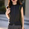 Feld chaleco cárdigan de punto con cuello en V para mujer, diseño retro de bloques de color, top sin mangas para otoño