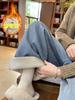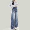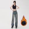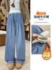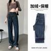 Jeans Azules con Forro Polar para Mujer 2025 Nuevo Otoño/Invierno Talla Pequeña Cintura Alta Caída Recta Sueltos Pantalones Pierna Ancha