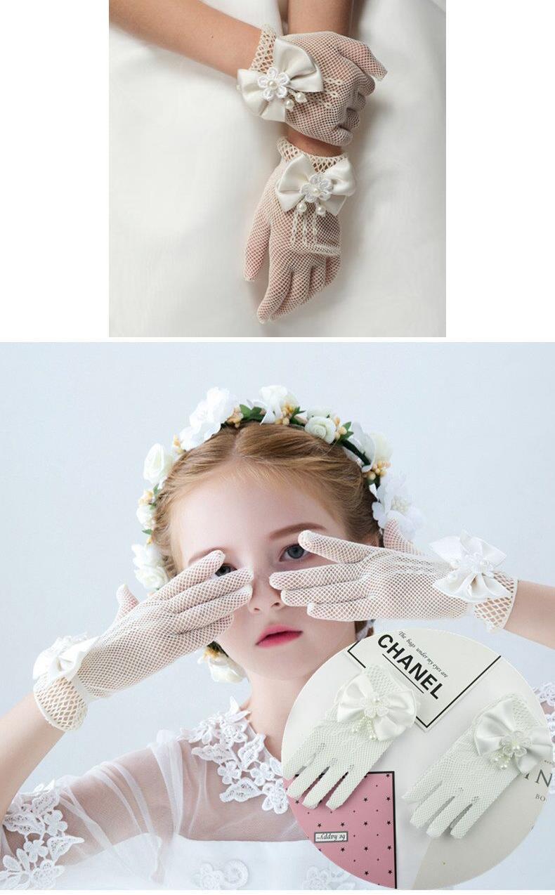 Guantes para Niños Verano Delgados de Malla Niña de las Flores Jardín de Niños Niños Actuación Etiqueta Guantes Blancos Puros de Cinco Dedos