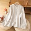 Foto Real Otoño 2025 Nuevo Simple Temperamento Literario Color Sólido Camisa Cuello de Encaje Blusa Casual Simple Versátil