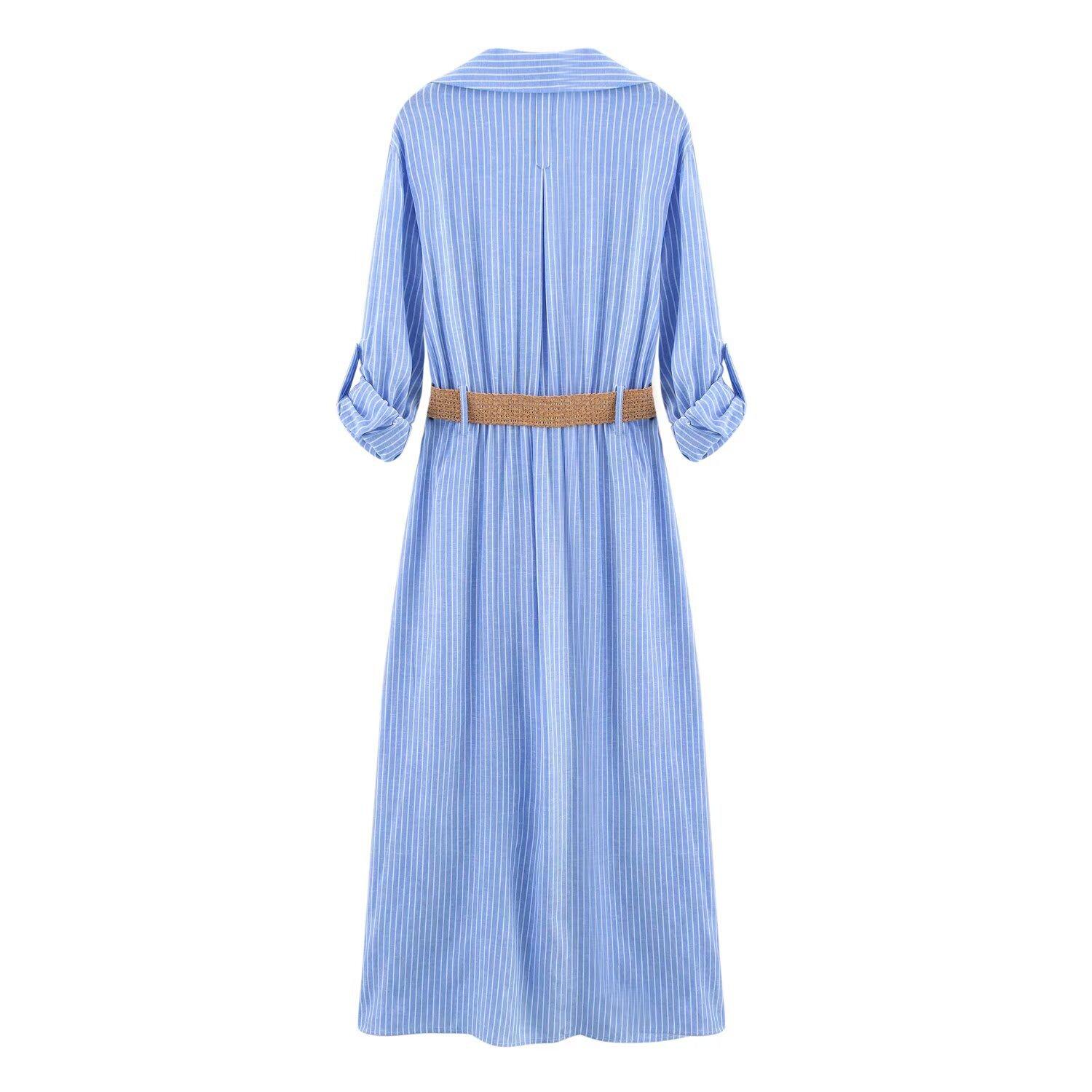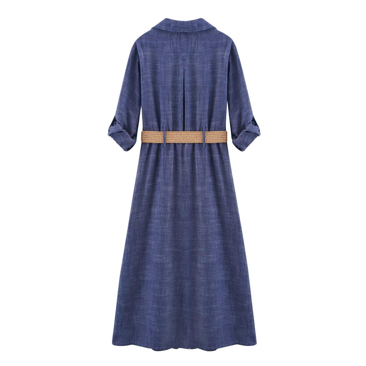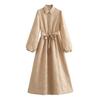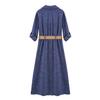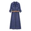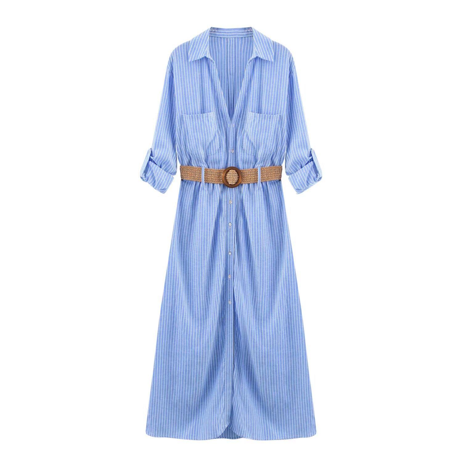 Comercio Exterior 2025 Verano Nuevo Estilo Europeo y Americano Commuter Vestido Midi con Cinturón Falda Larga Estilo Camisero para Mujer Trendy