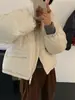 Europeo y Americano de alta gama 90 plumón de pato blanco satén chamarra de plumón para mujer corto moda invierno 2025 cuello alto engrosado suelto abrigo pan