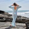 ¡Nuevo producto en 2025!! Vestido de Playa Europeo y Americano para Mujer Color Sólido Tejido Flor Bikini de Playa Traje de Baño Vestido de Mujer
