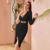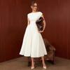 Vestido de Mujer Elegante de Color Sólido con Hombro Descubierto para Verano 2025, Moda Europea y Americana Transfronteriza, para Mujer, de Oficina