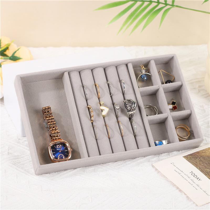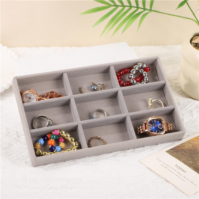 Caja de Almacenamiento de Joyería de Terciopelo Collar Pulsera Anillo Aretes Organizador de Escritorio Bandeja Cajón