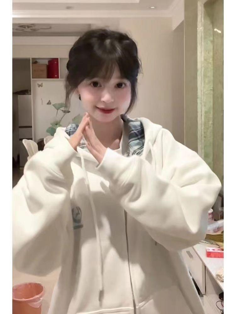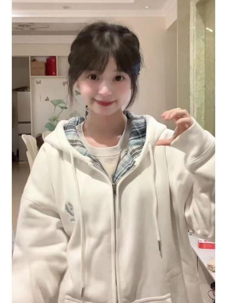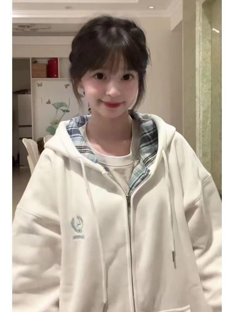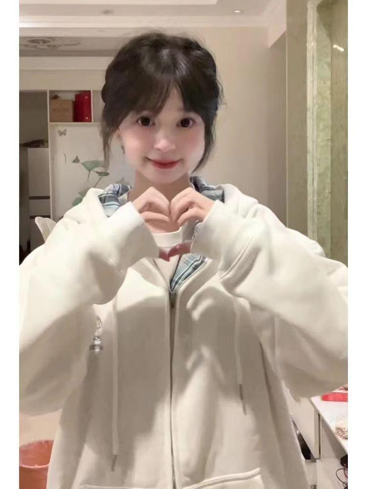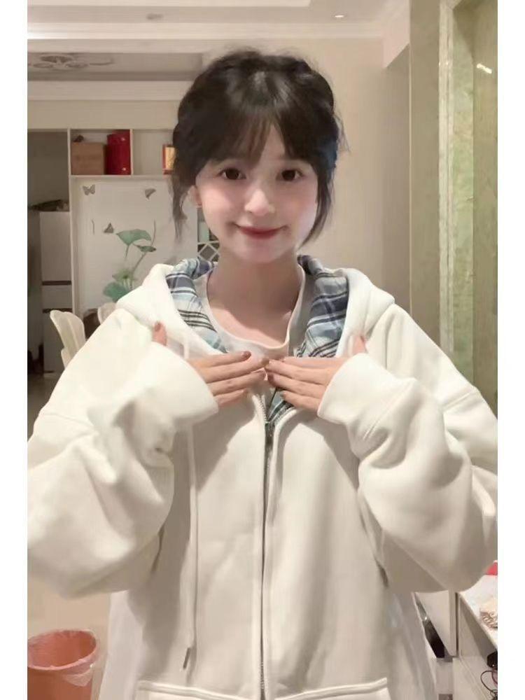 Sudadera con capucha de cuadros American High Street para mujer Otoño Invierno Felpa 2025 Nuevo Oversize Estilo Coreano Chaqueta para mujer Otoño