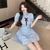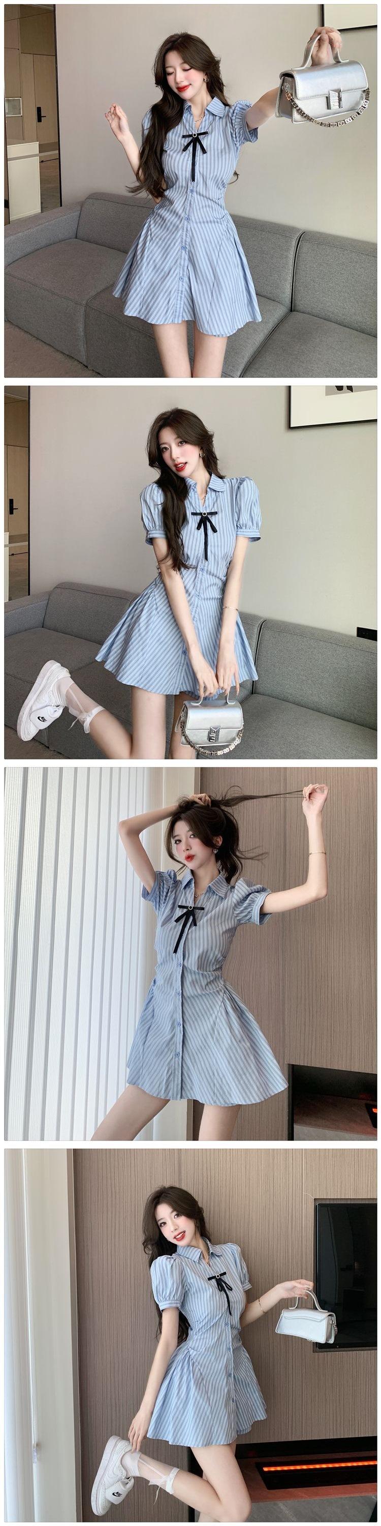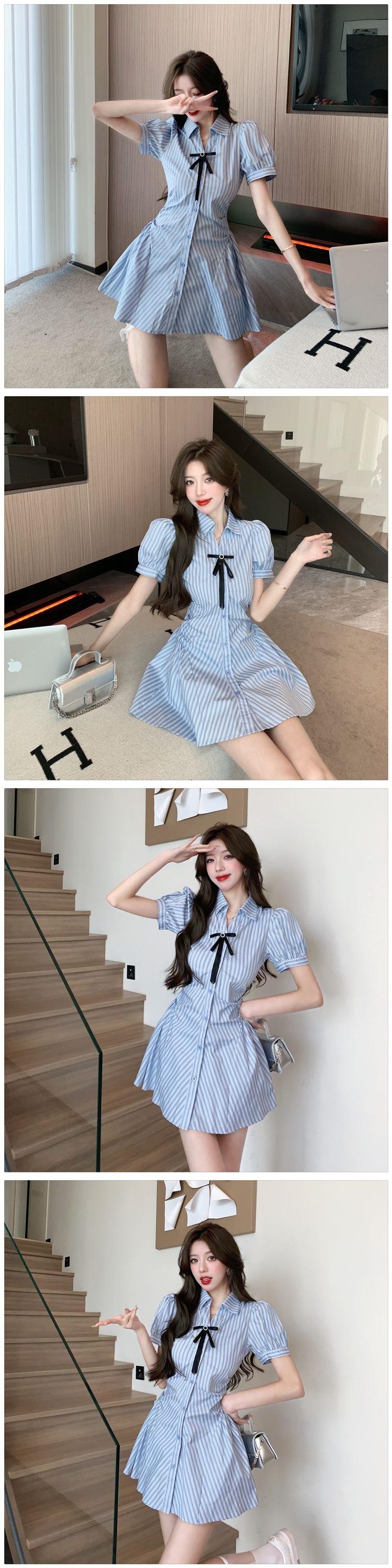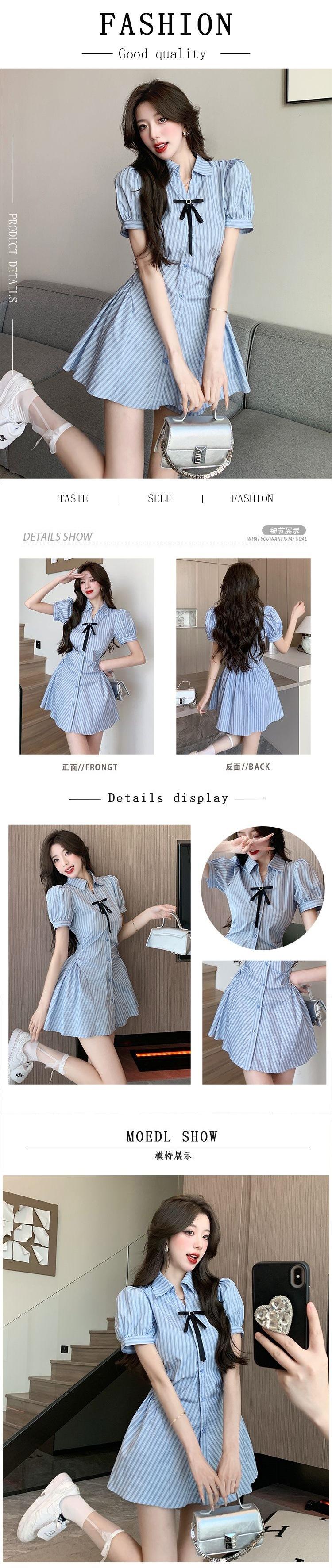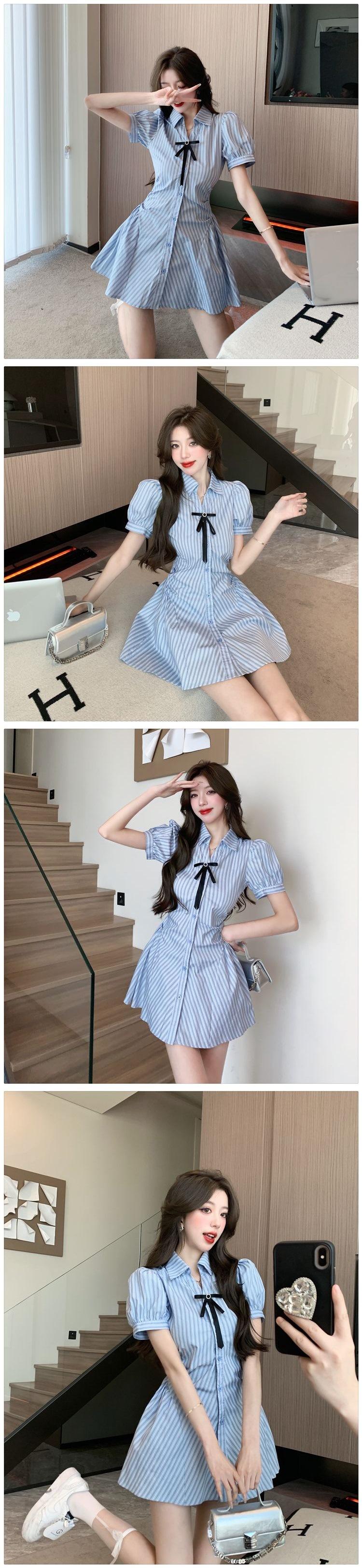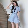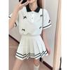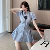 Traje estilo universitario falda adelgazante de cintura vestido camisero a rayas shorts de verano de cintura alta traje de dos piezas de moda para mujer
