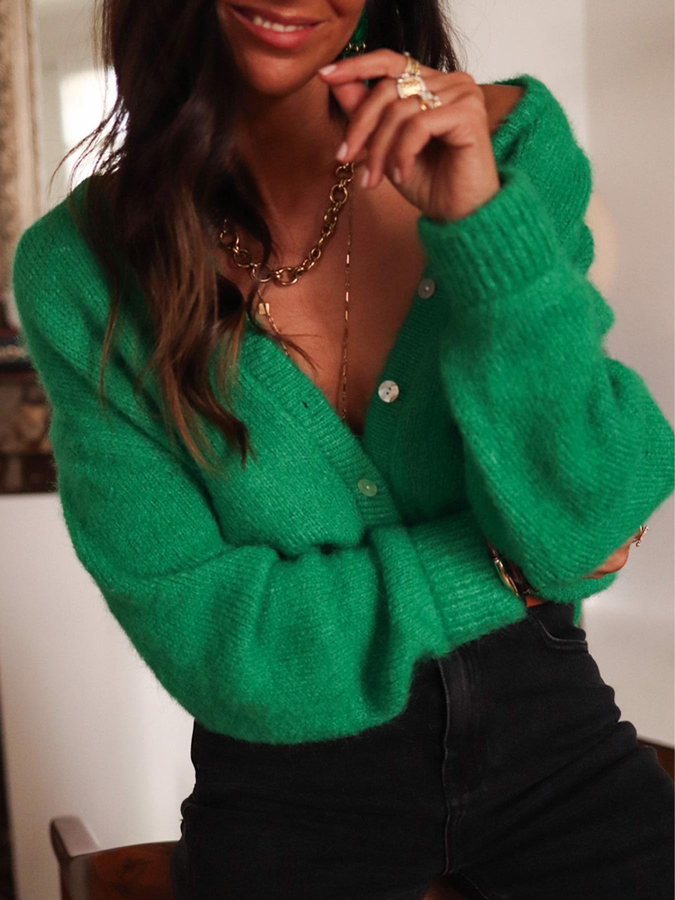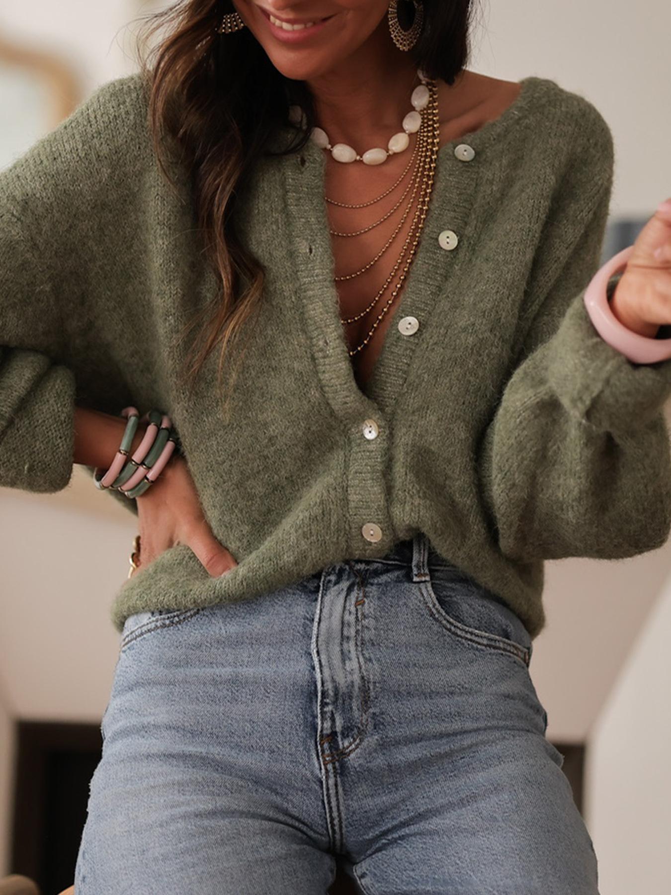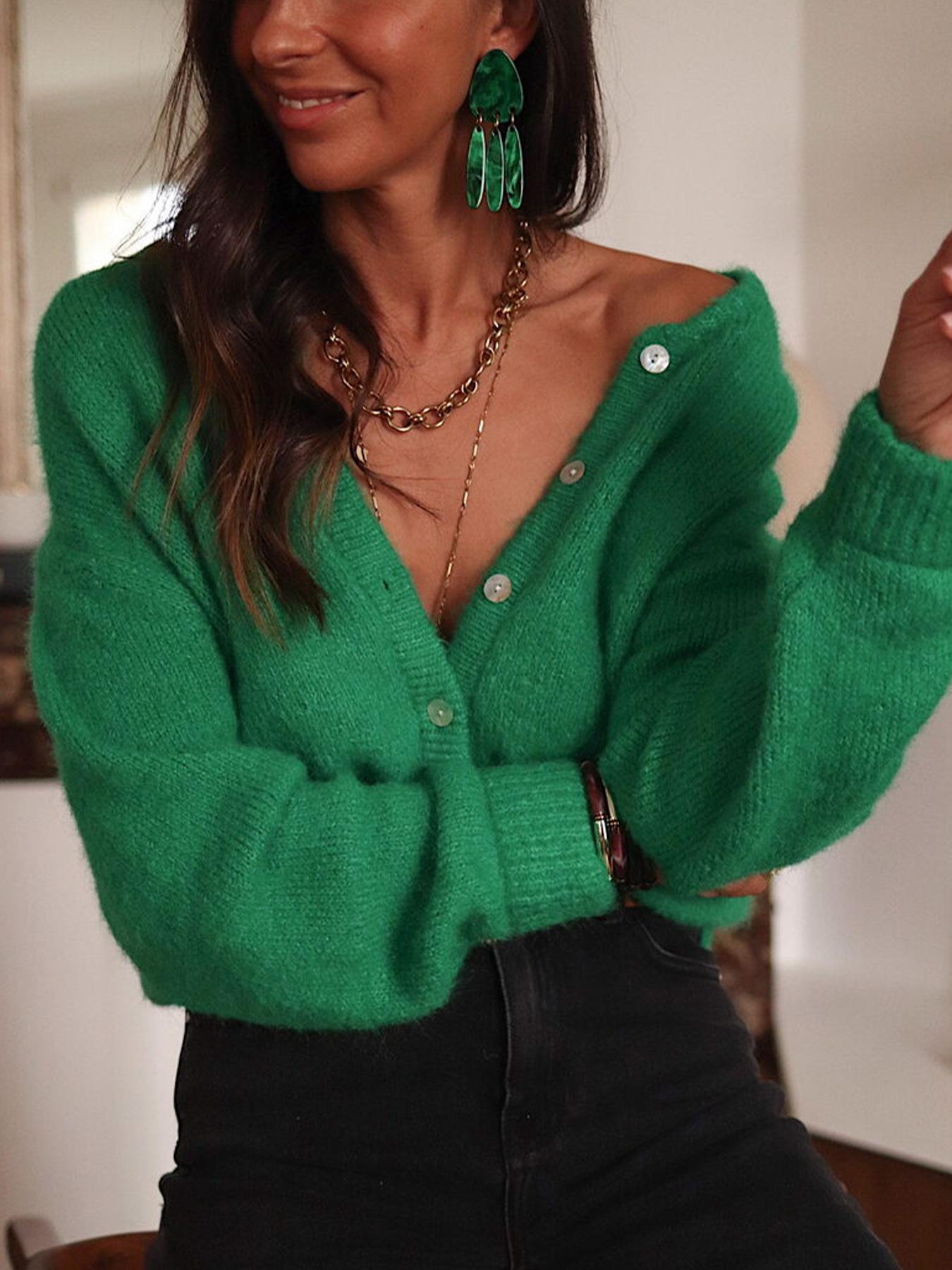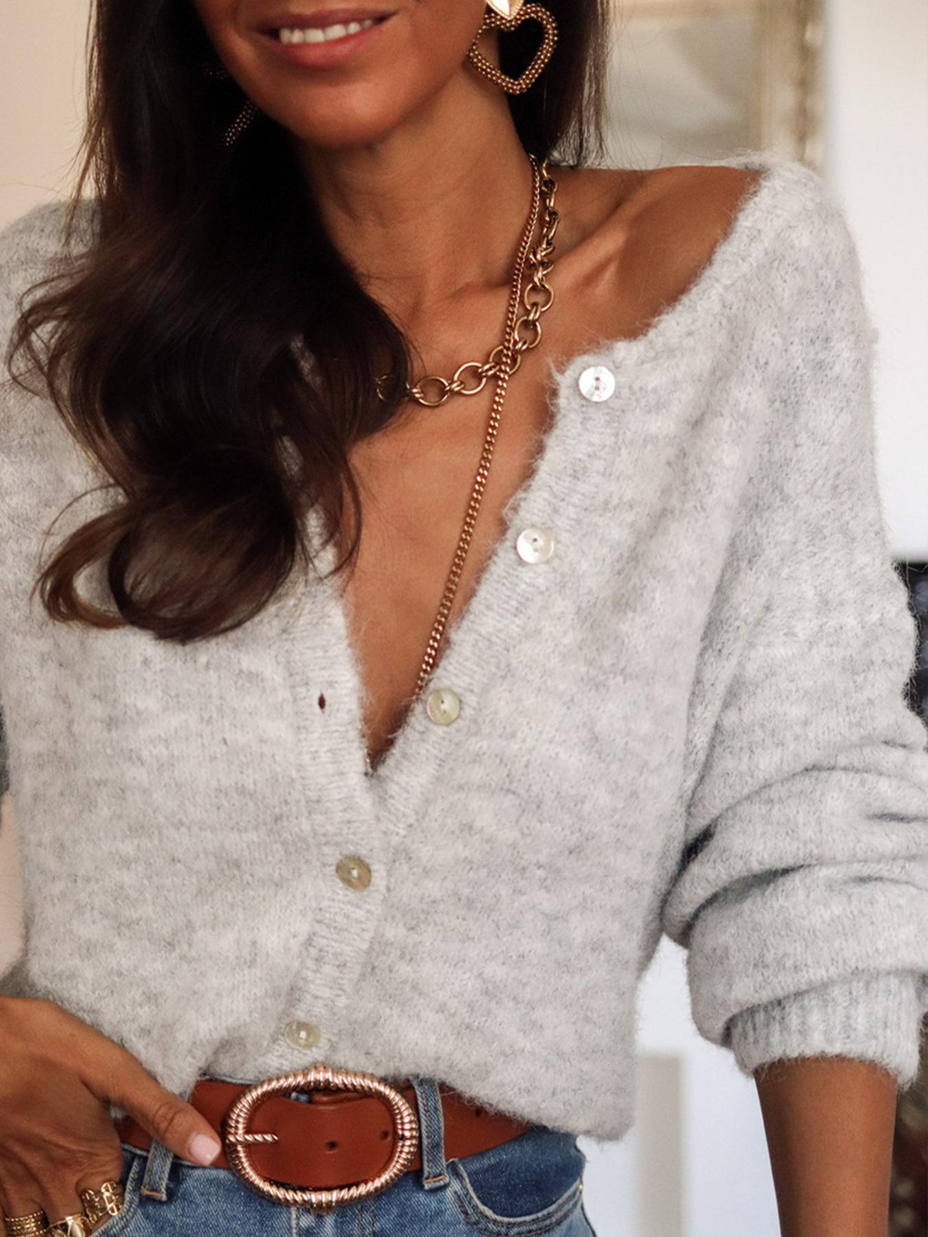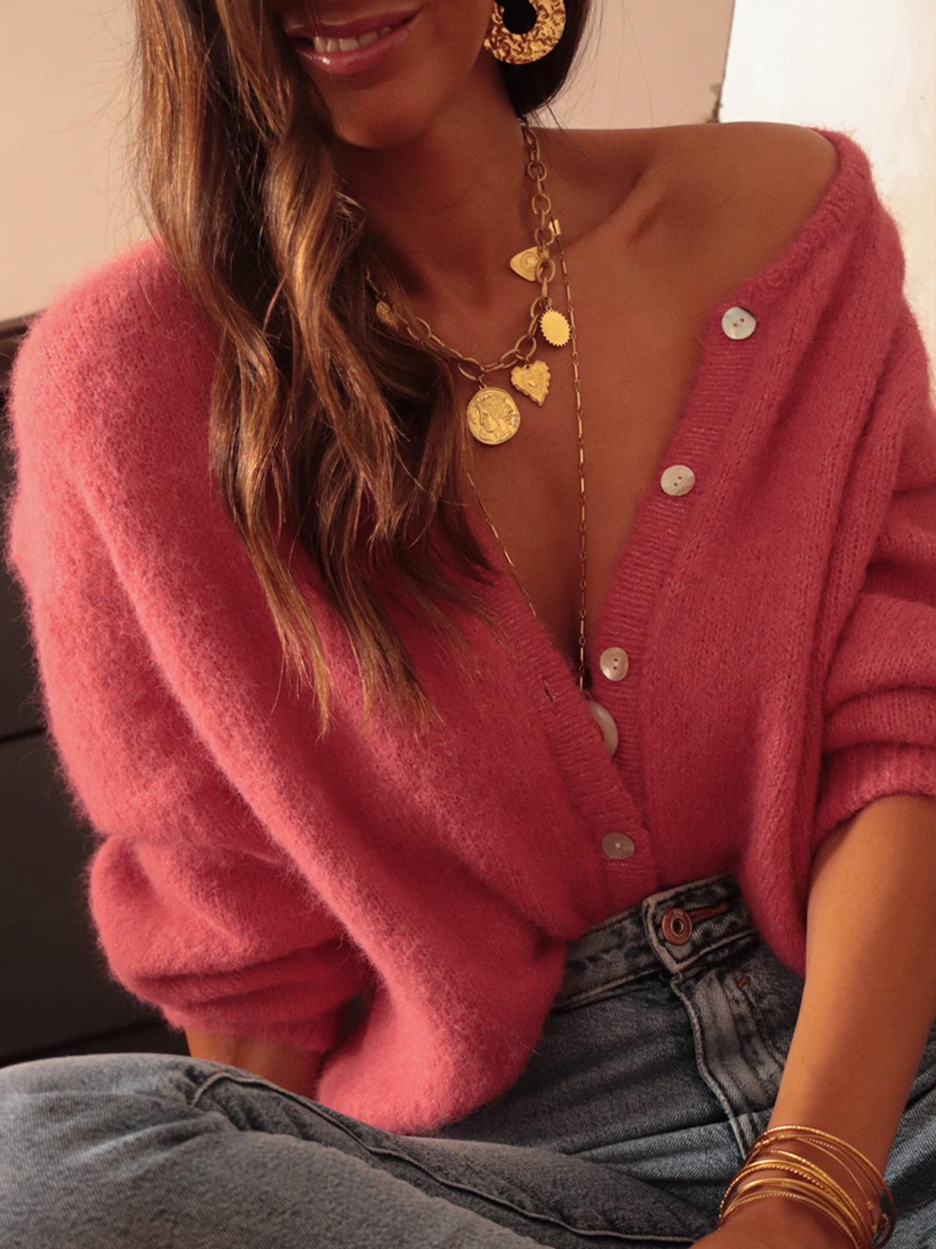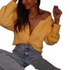Cárdigan de punto de felpa de color puro transfronterizo europeo y americano con cuello en V profundo, top suelto y sexy, moda perezosa, suéter de otoño e invierno