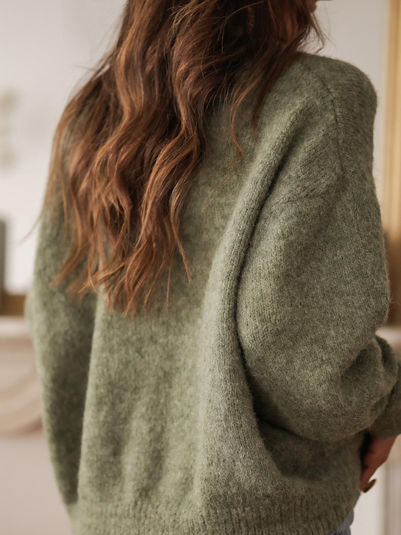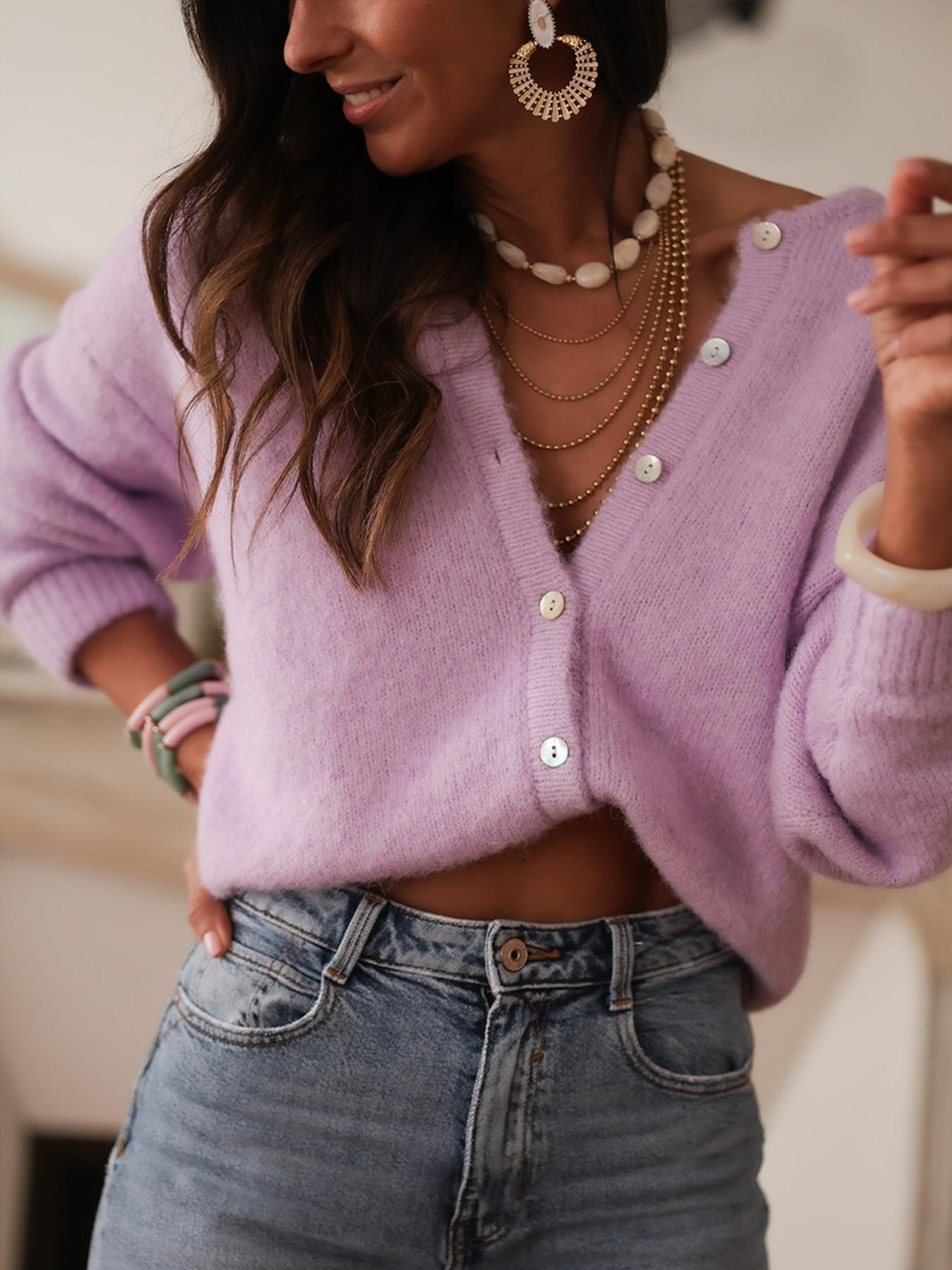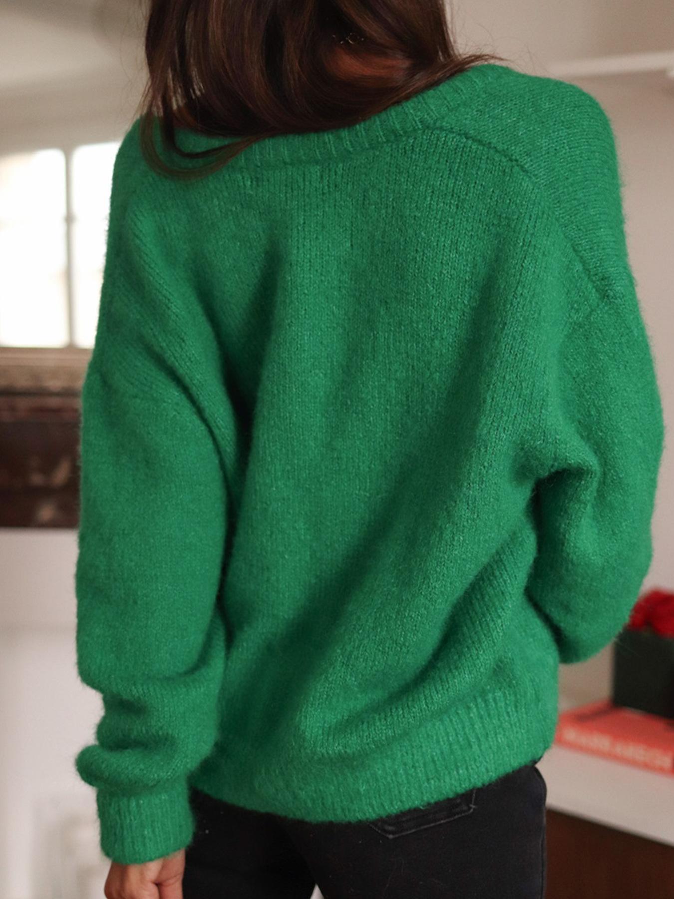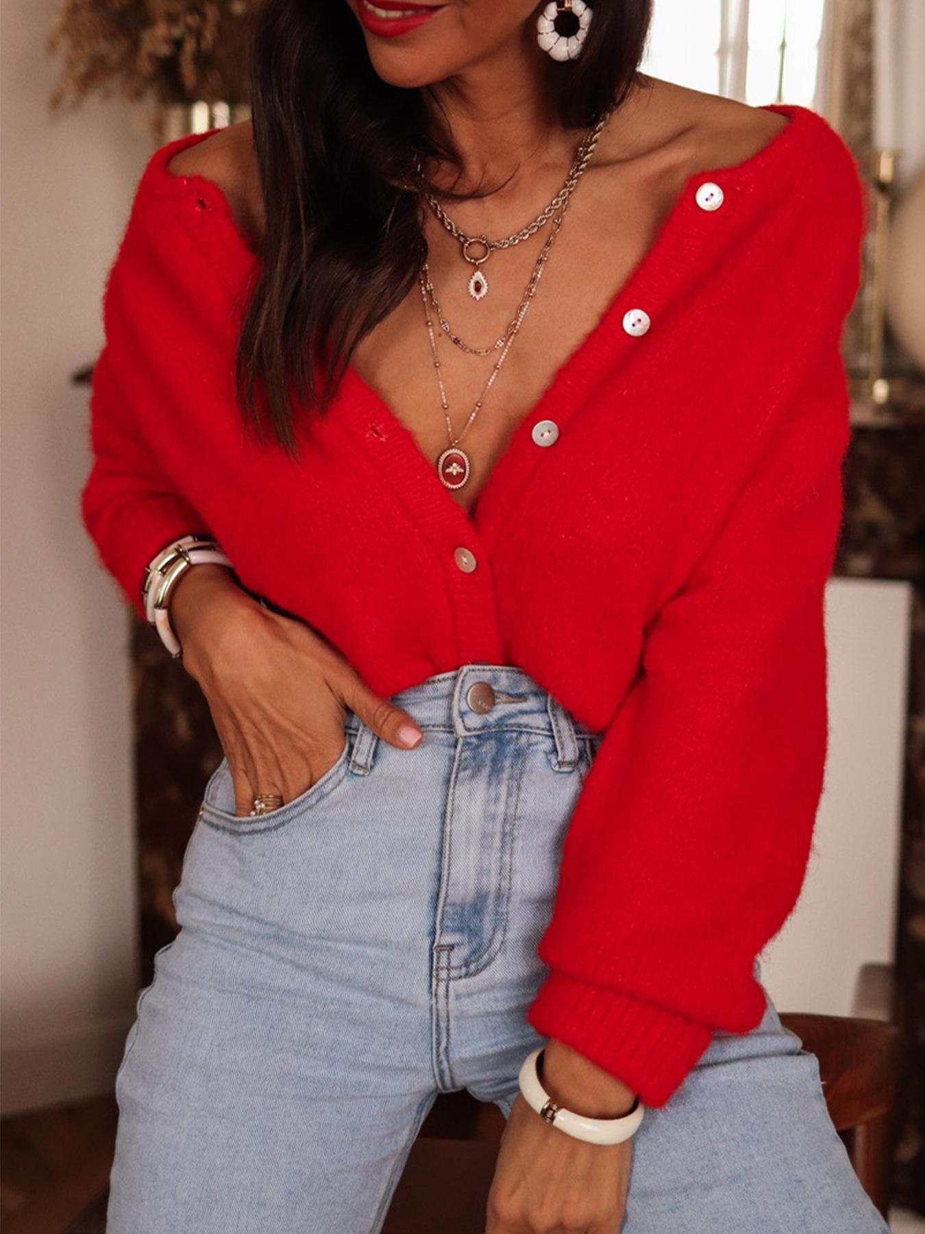 Cárdigan de punto de felpa de color puro transfronterizo europeo y americano con cuello en V profundo, top suelto y sexy, moda perezosa, suéter de otoño e invierno