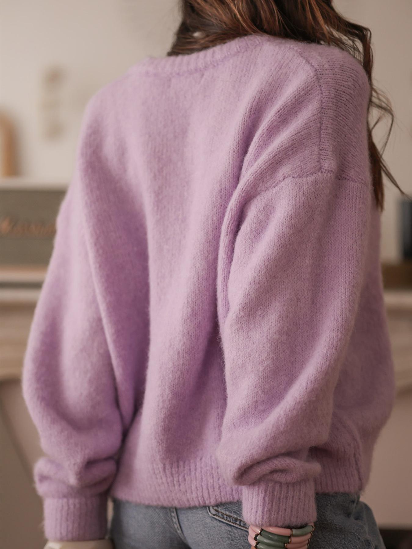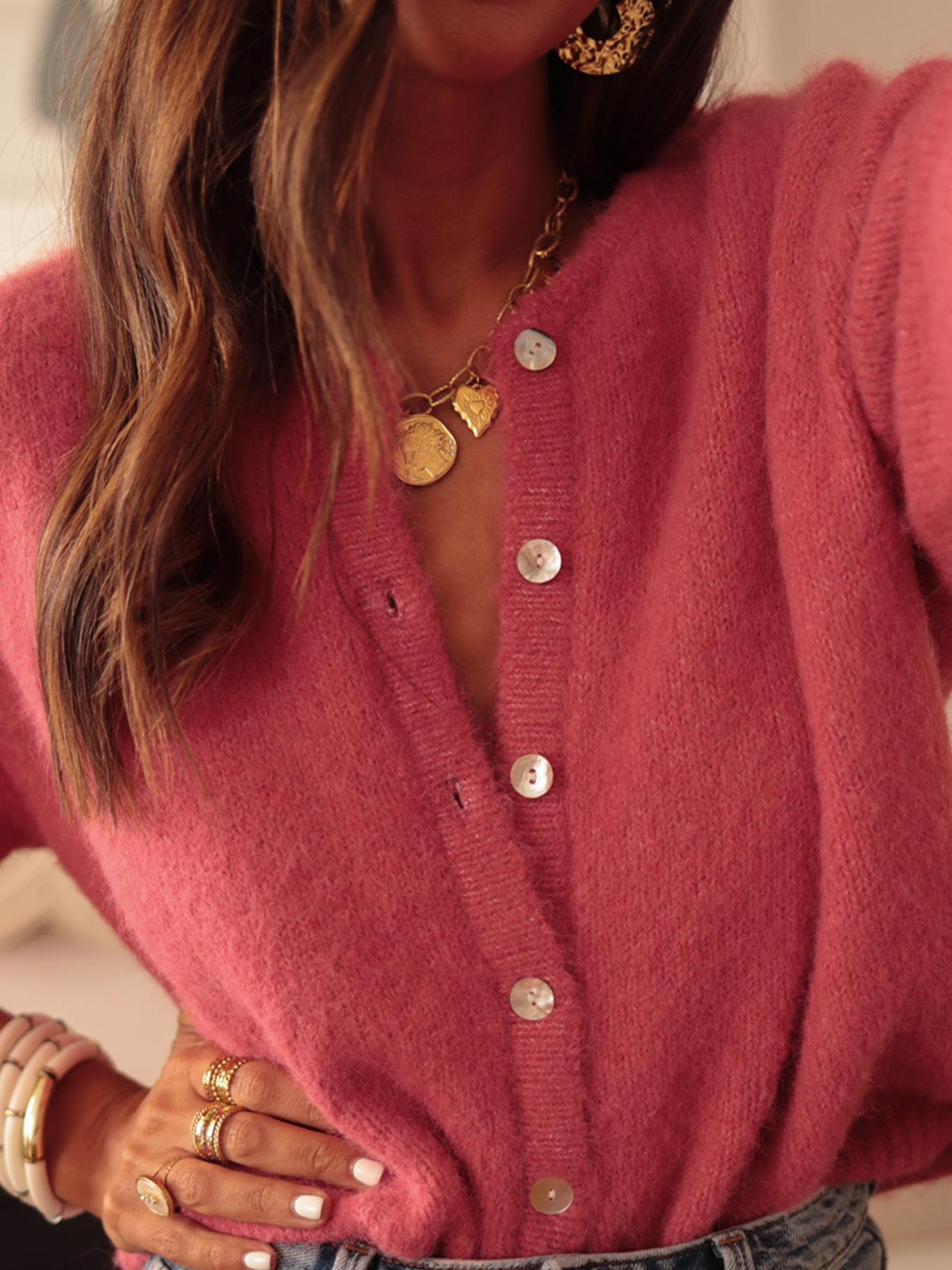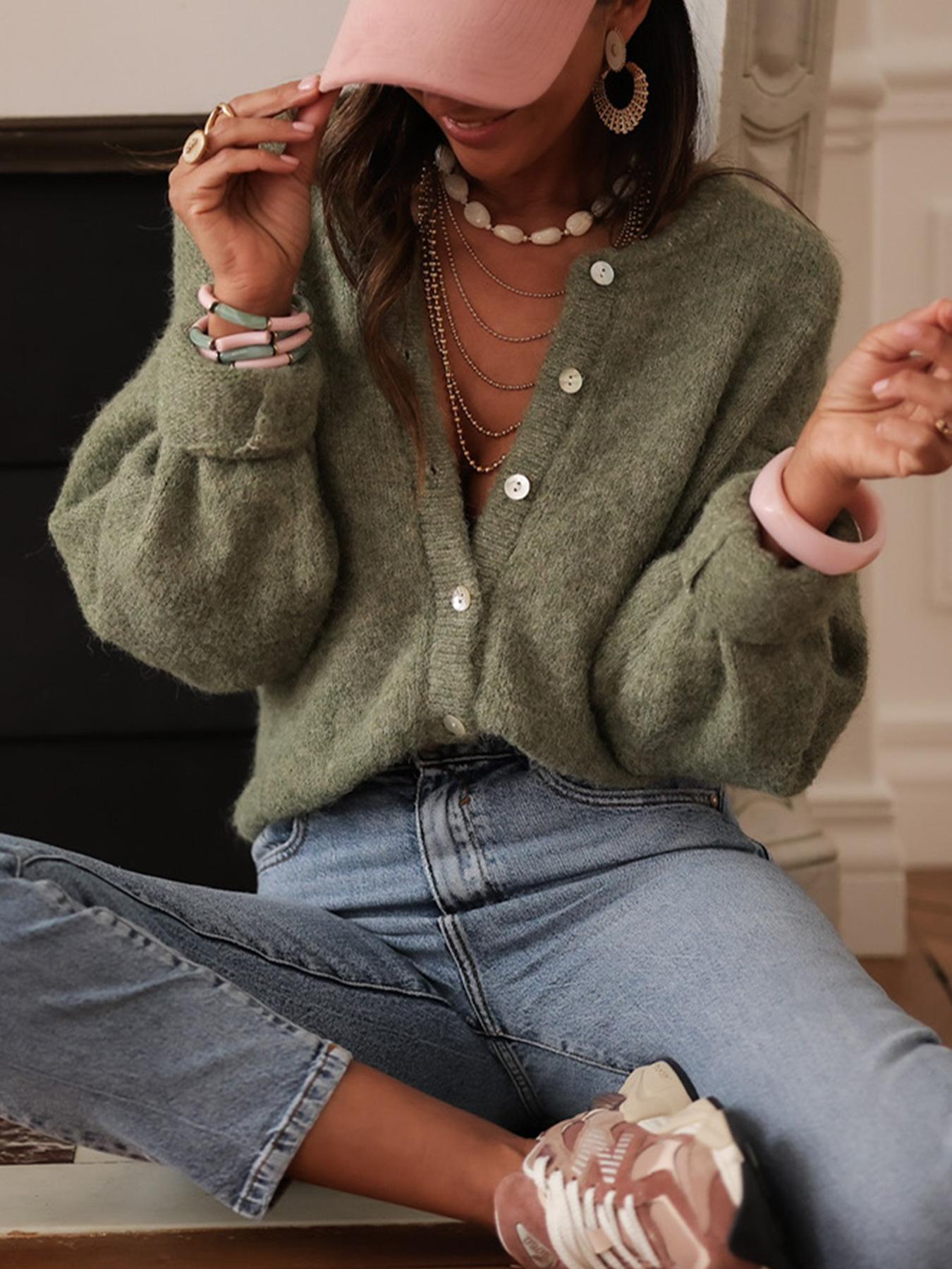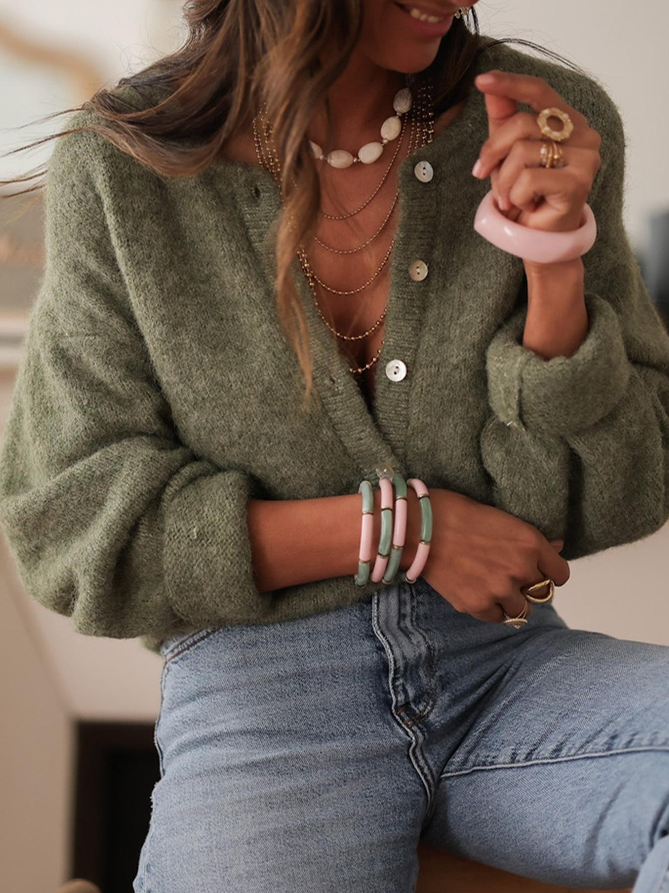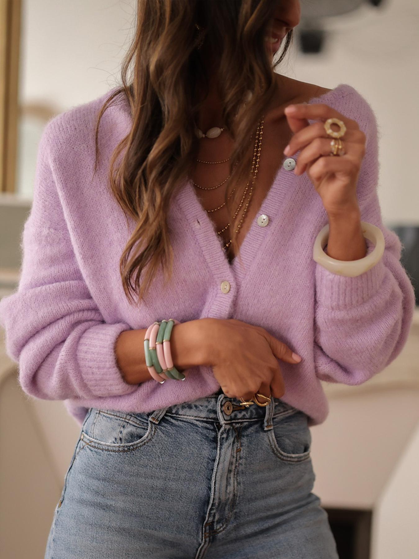 Cárdigan de punto de felpa de color puro transfronterizo europeo y americano con cuello en V profundo, top suelto y sexy, moda perezosa, suéter de otoño e invierno